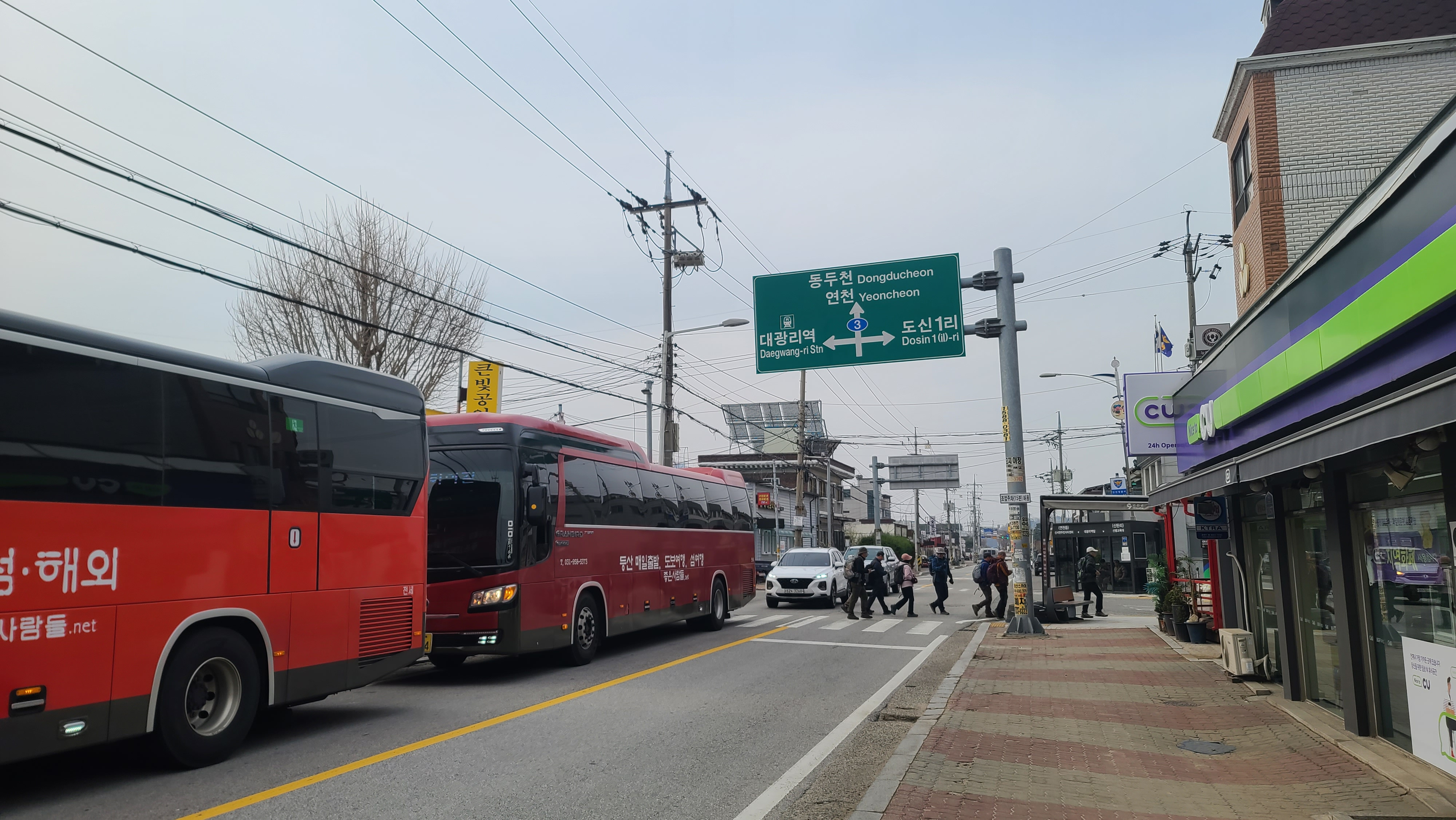 연천읍과 신서면을 잇는 국도 제3호선 '연신로'의 대광리역 앞에서 '좋은사람들' 도보여행 버스가 정차하였다.
