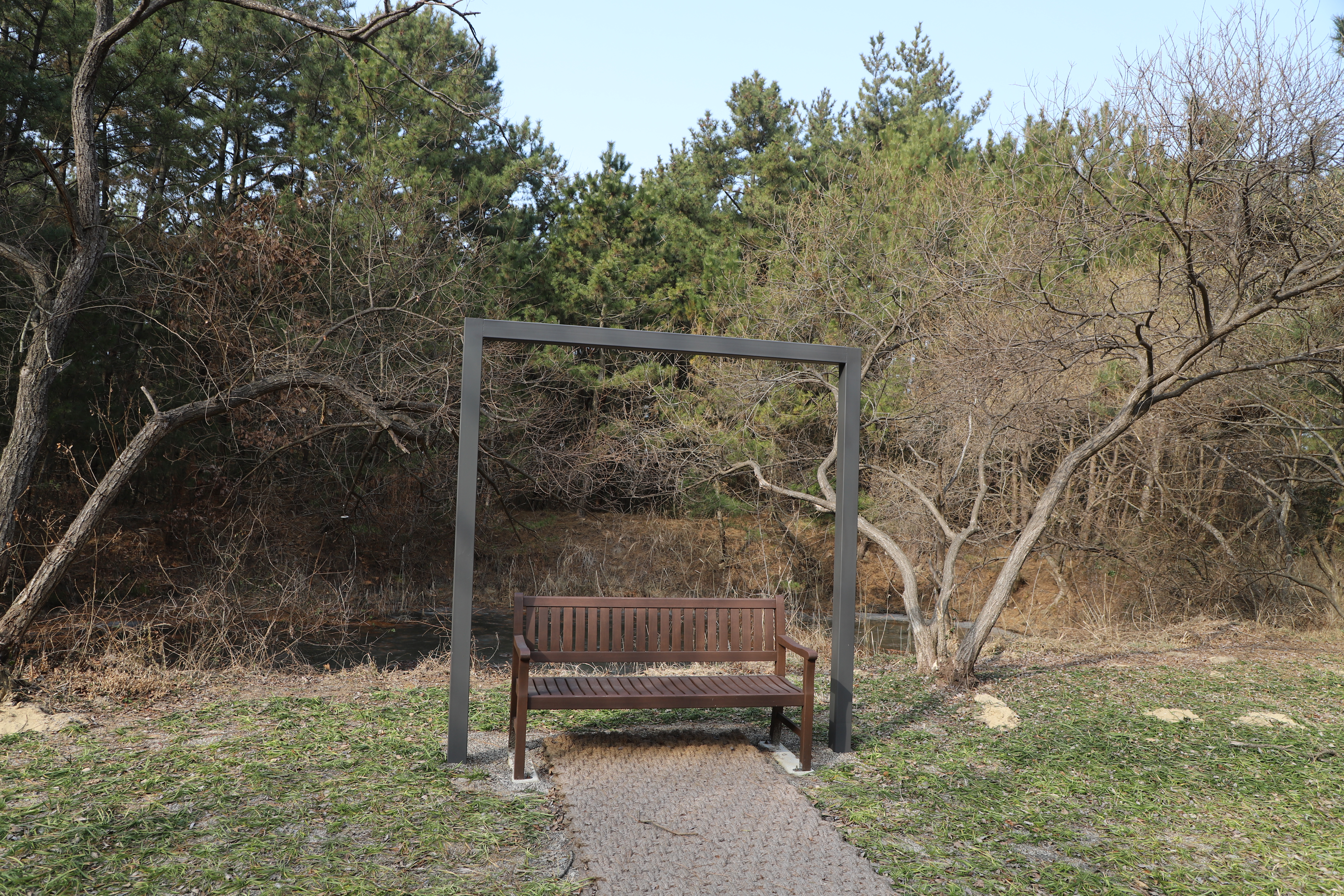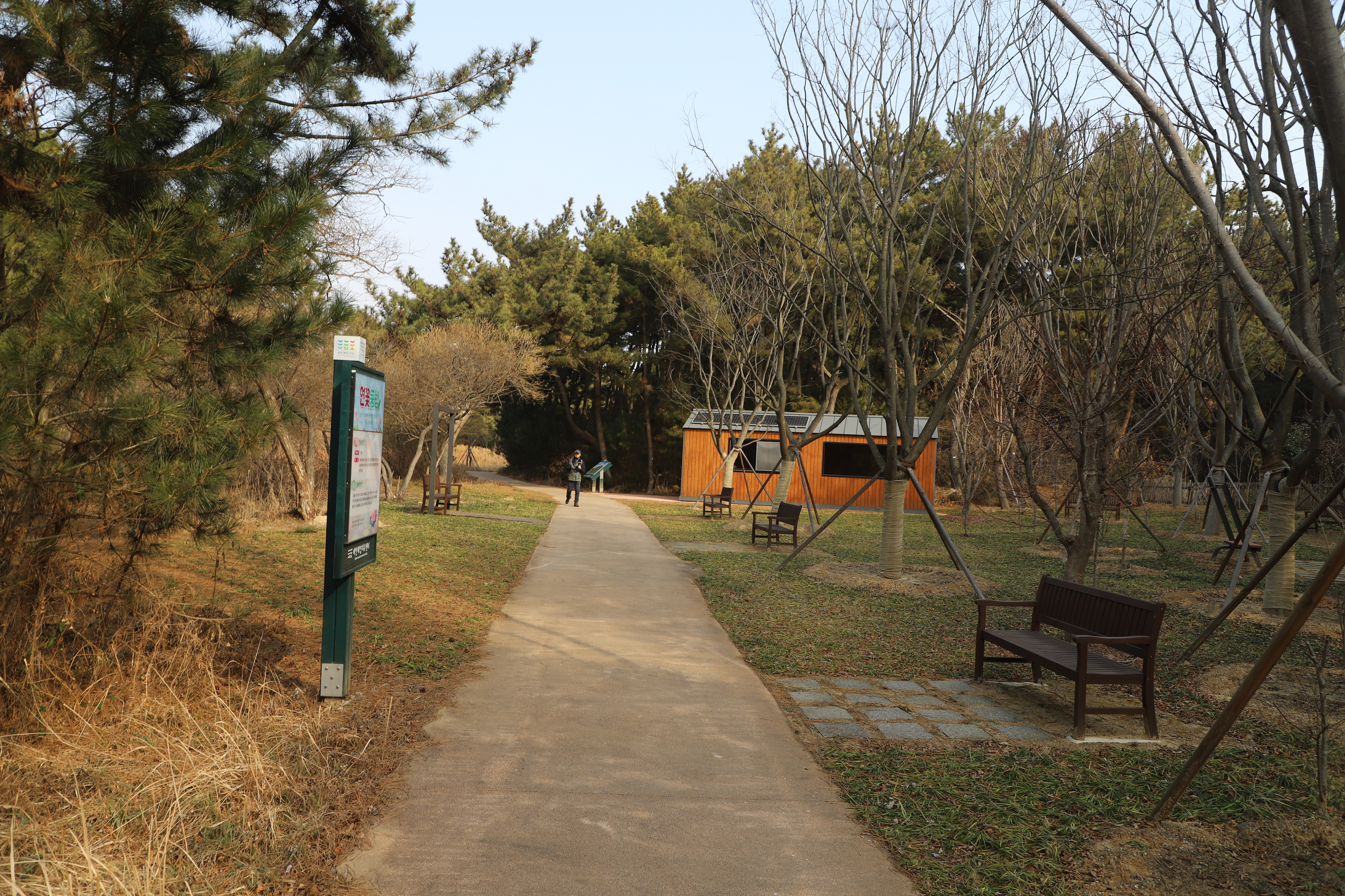 왼쪽에 연꽃둠벙이 있고, 오른쪽에 나무들이 식재되어 있으며, 맥문동이 자란다. 뒤쪽에는 실내 힐링쉼터가 조성되어 있다.