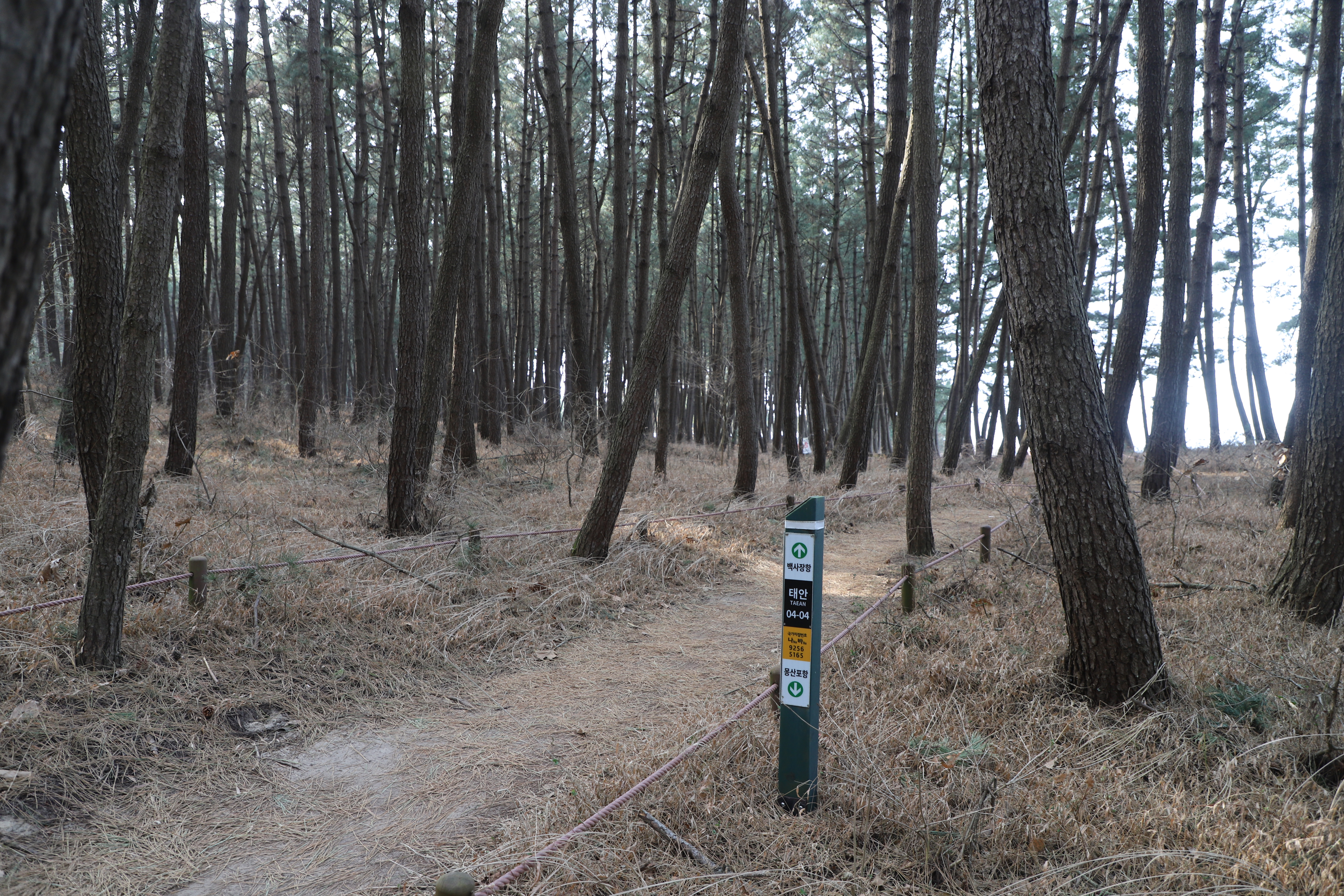동서트레일은 태안해변길 4코스 솔모랫길 문주를 통과하여 해송숲길로 이어간다.