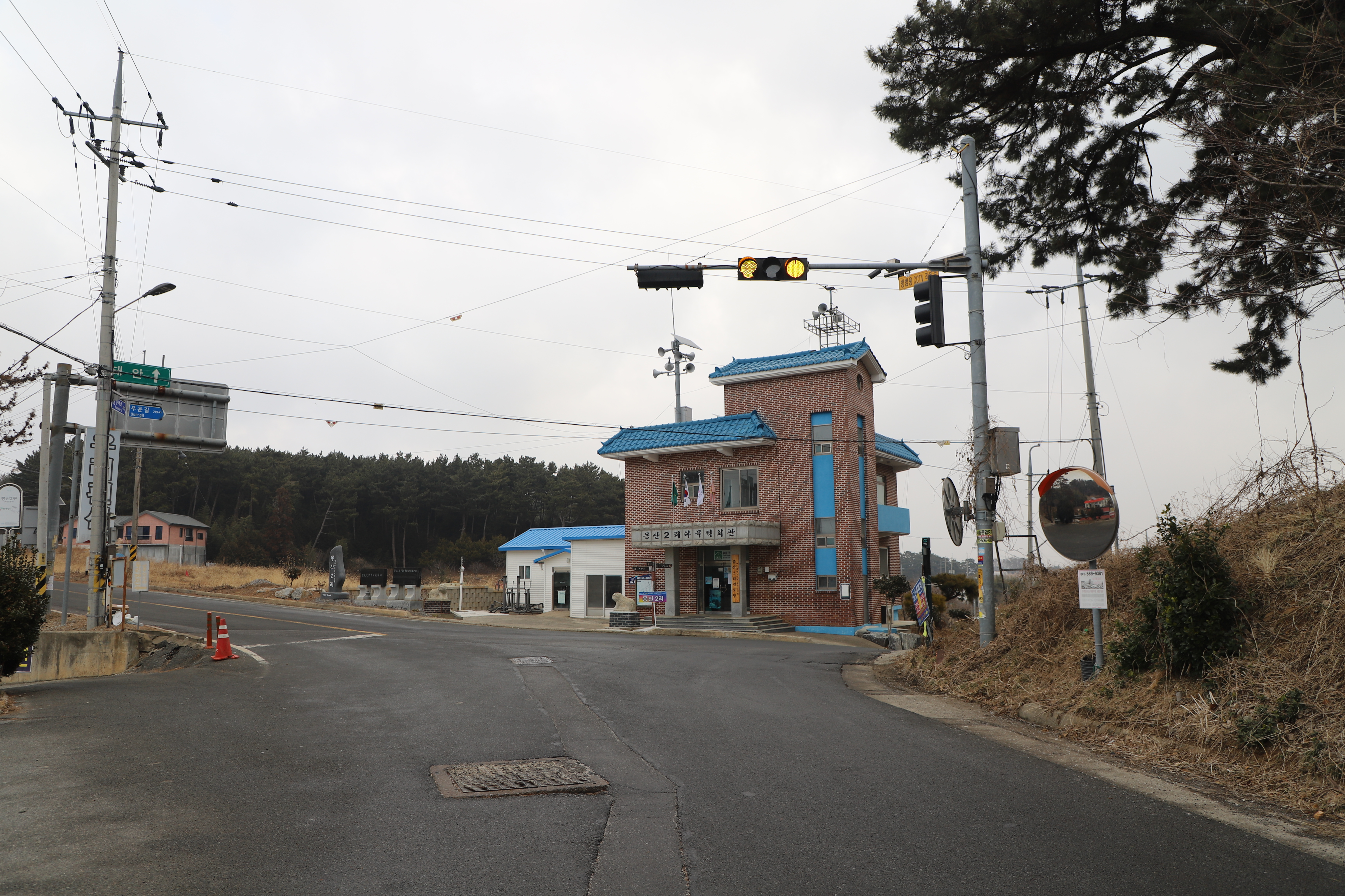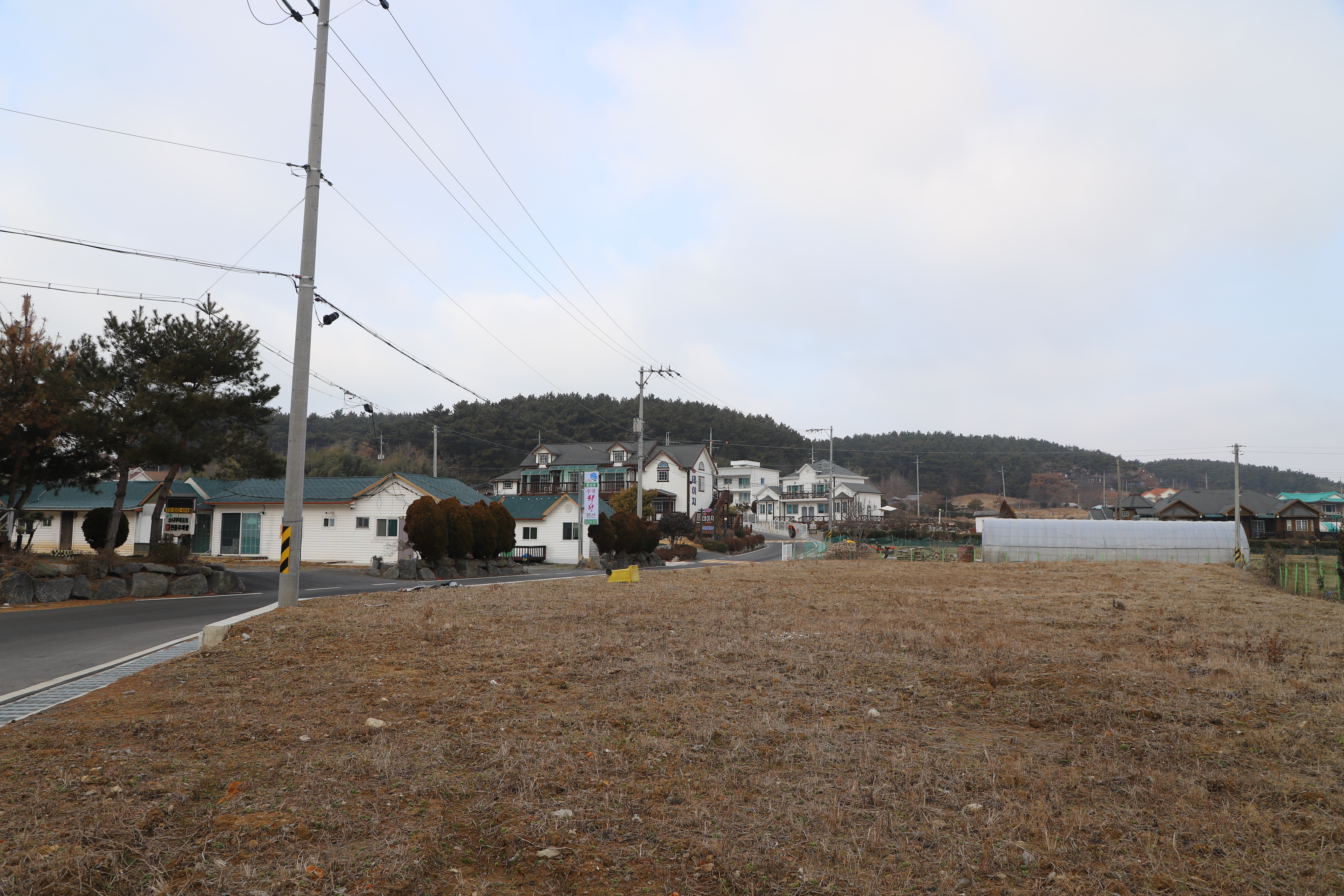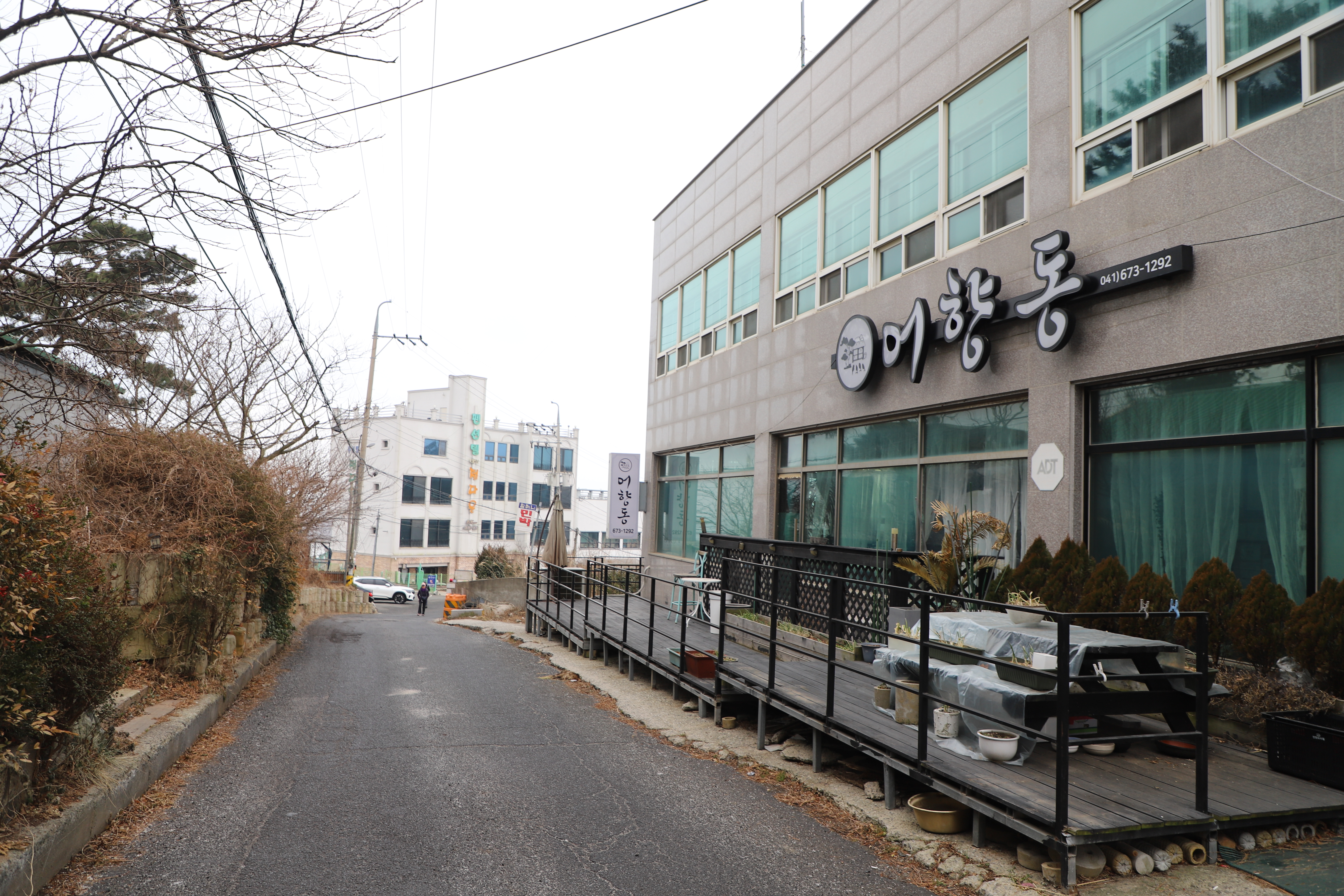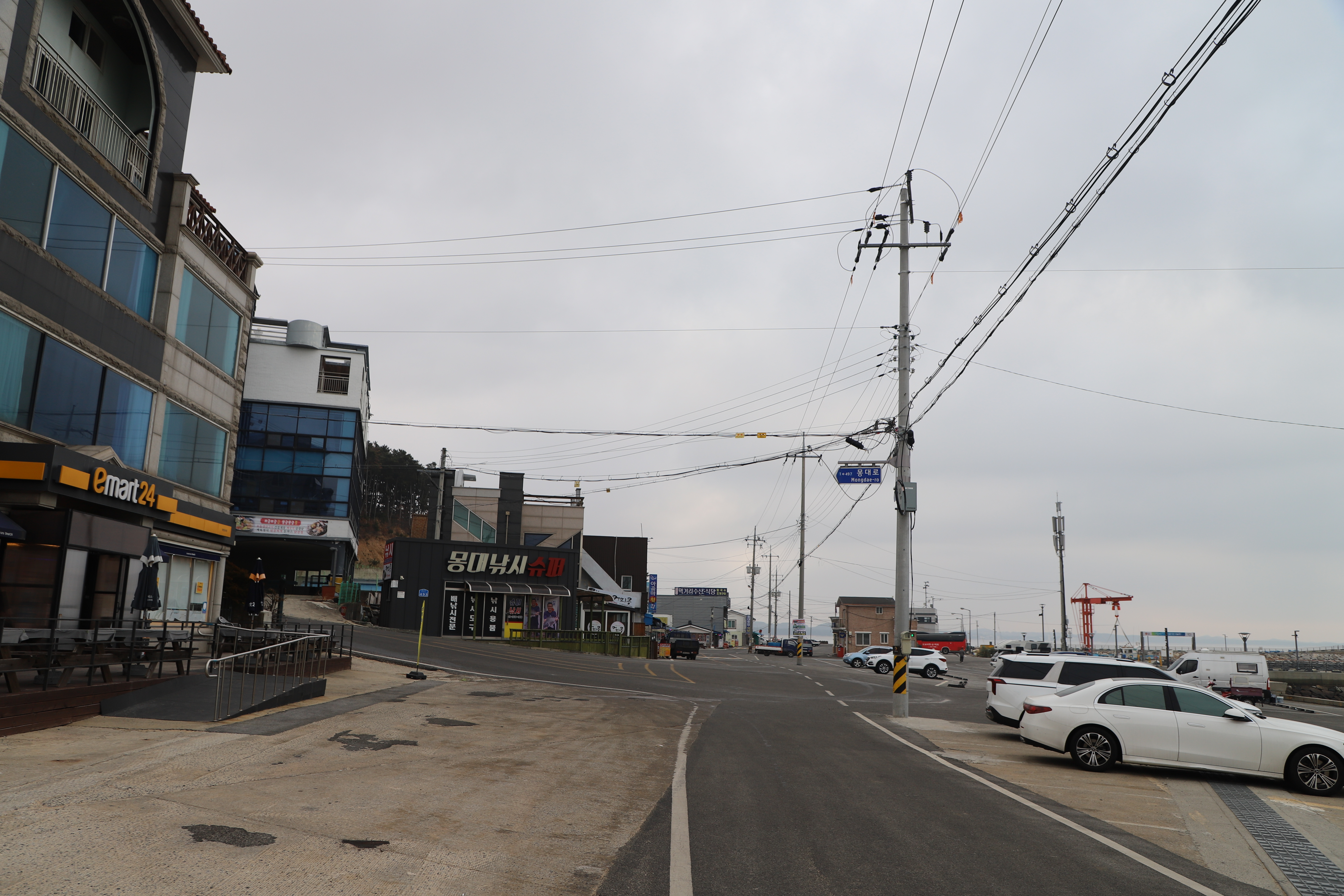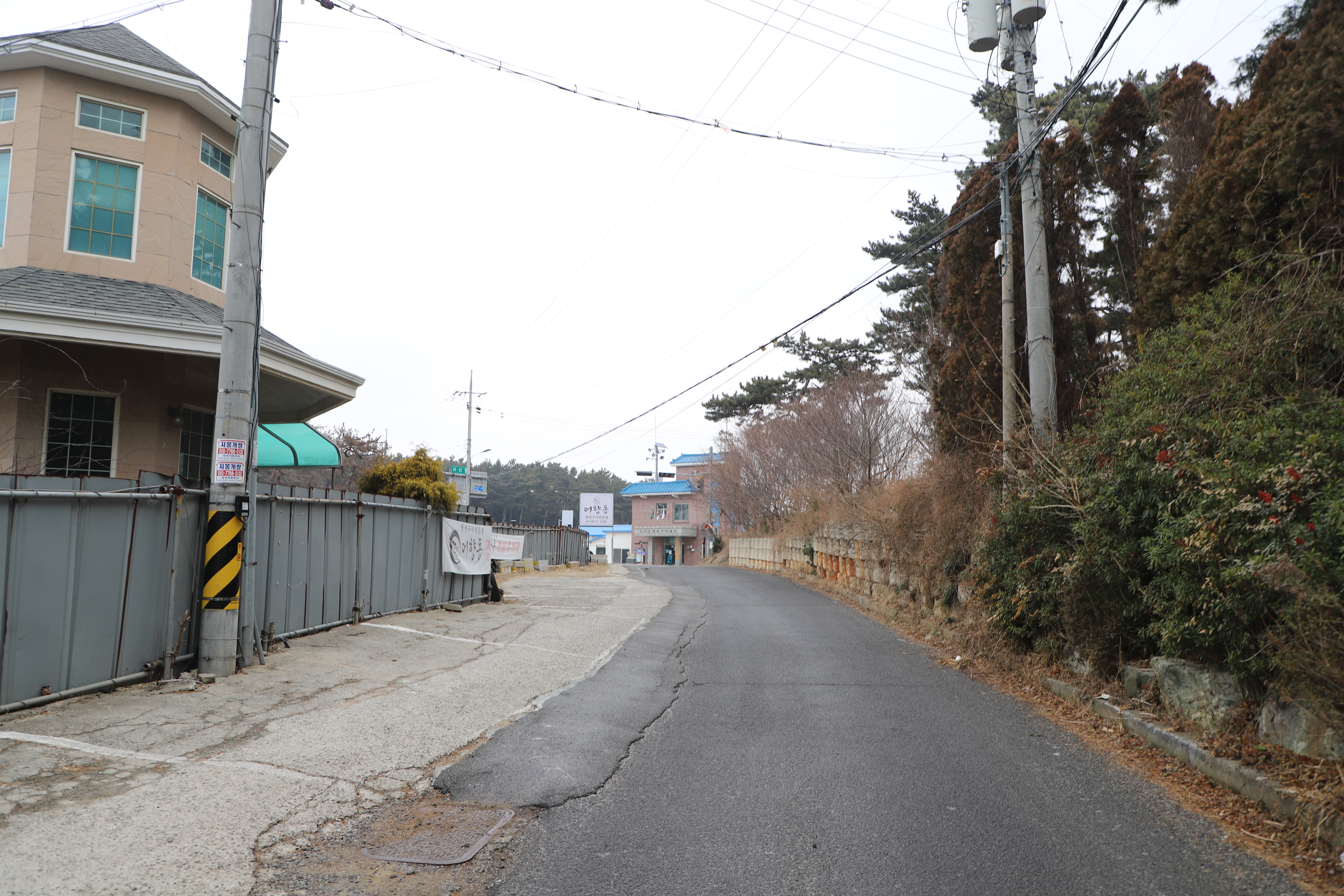 이마트 옆 몽산포항 이정목에서 몽대로를 따라 언덕의 야생동물이 죽어 있는 어향동 음식점 앞으로 올라와 뒤돌아보았다.