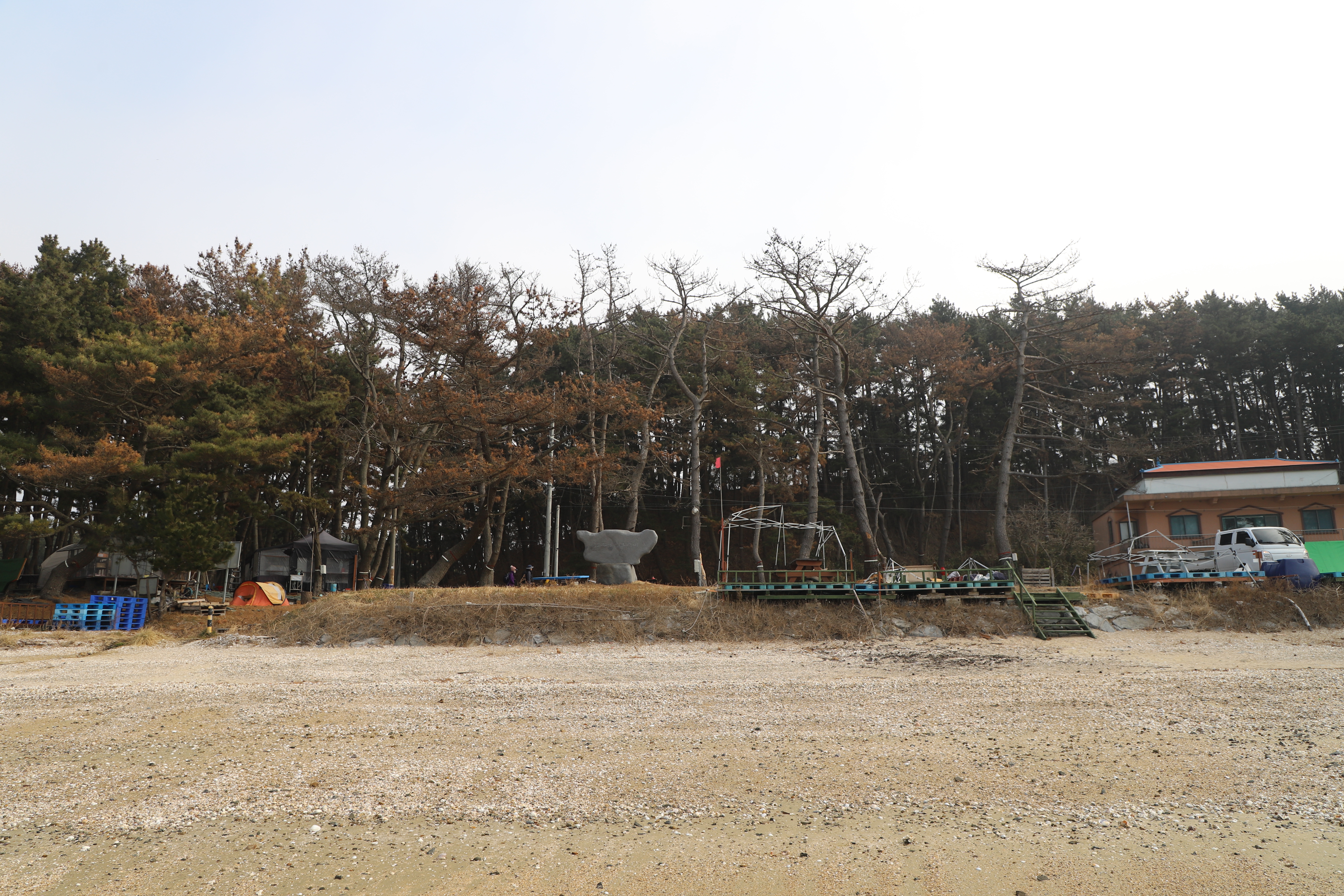 몽산포항에 두 번째, 몽산포 해수욕장에 네 번째로 온다. 그런데 지명이 분명하지 않아 혼란스럽다. 태안군 남면 몽산리의 몽산포항과 남면 신장리의 몽산포 해수욕장은 행정구역이 다르다. 몽산포항은 예전 몽대리였으므로 몽대포구로 불리다가 행정구역 지명이 몽산리로 바뀌게 되었으며, 선착장이 생겨나고 방파제가 건립되면서 몽산포항이라 불리게 된 것 같다. 그리고 몽산포 해수욕장 지역은 몽대리 지역이었다가 신장리 지역으로 편입되었는데, 옛 몽대포구가 몽산포항이라 불리면서 이곳도 몽상포 해수욕장이라 이르게 된 것이라고 추정한다. 몽산포가 어디일까? 몽대포구에서 남쪽 신장리 지역까지를 모두 몽산포라 이르는 것 같다.
