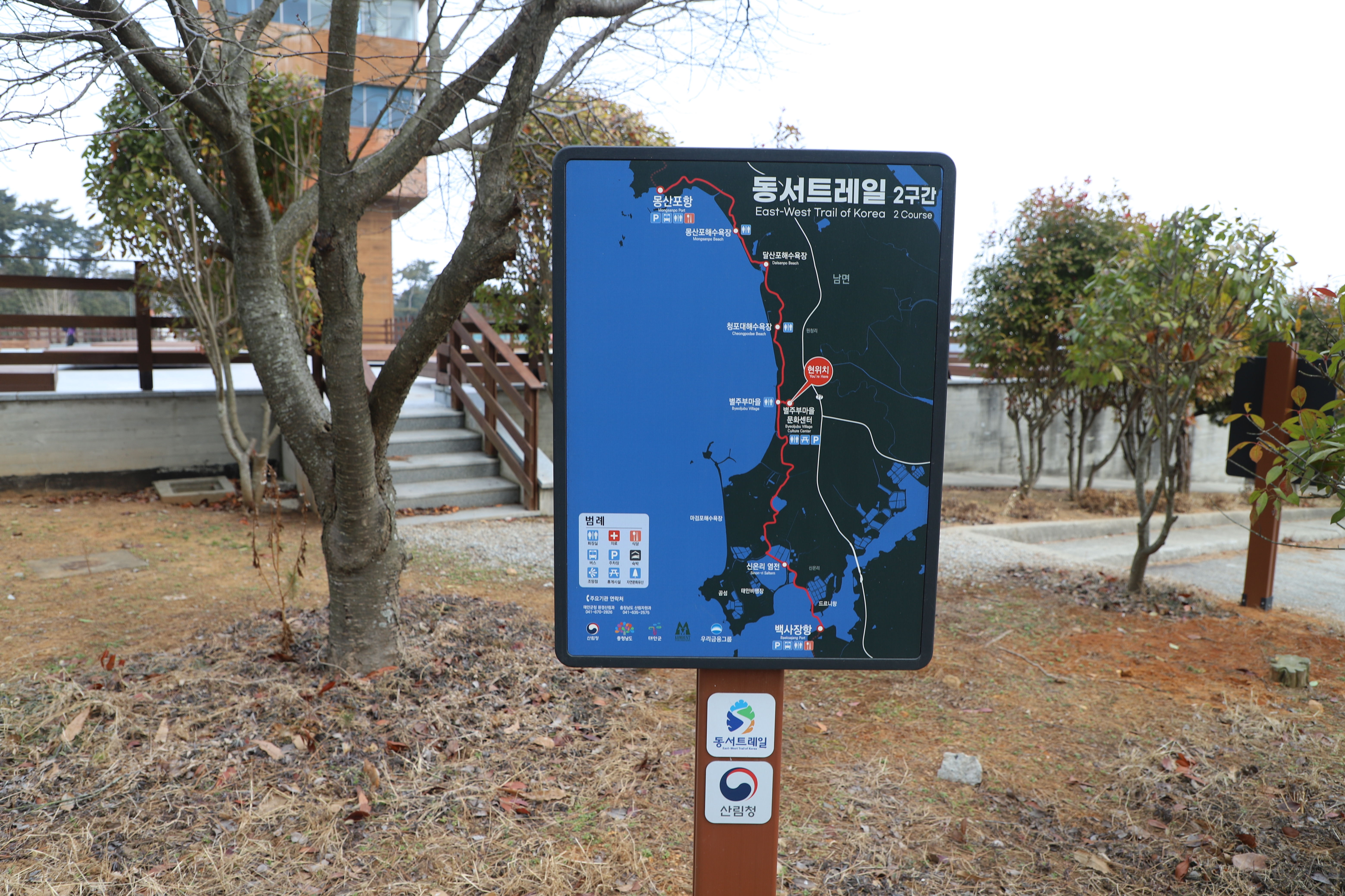별주부마을 문화센터 뒤쪽 출입구에 동서트레일 2구간 안내도가 세워져 있다.