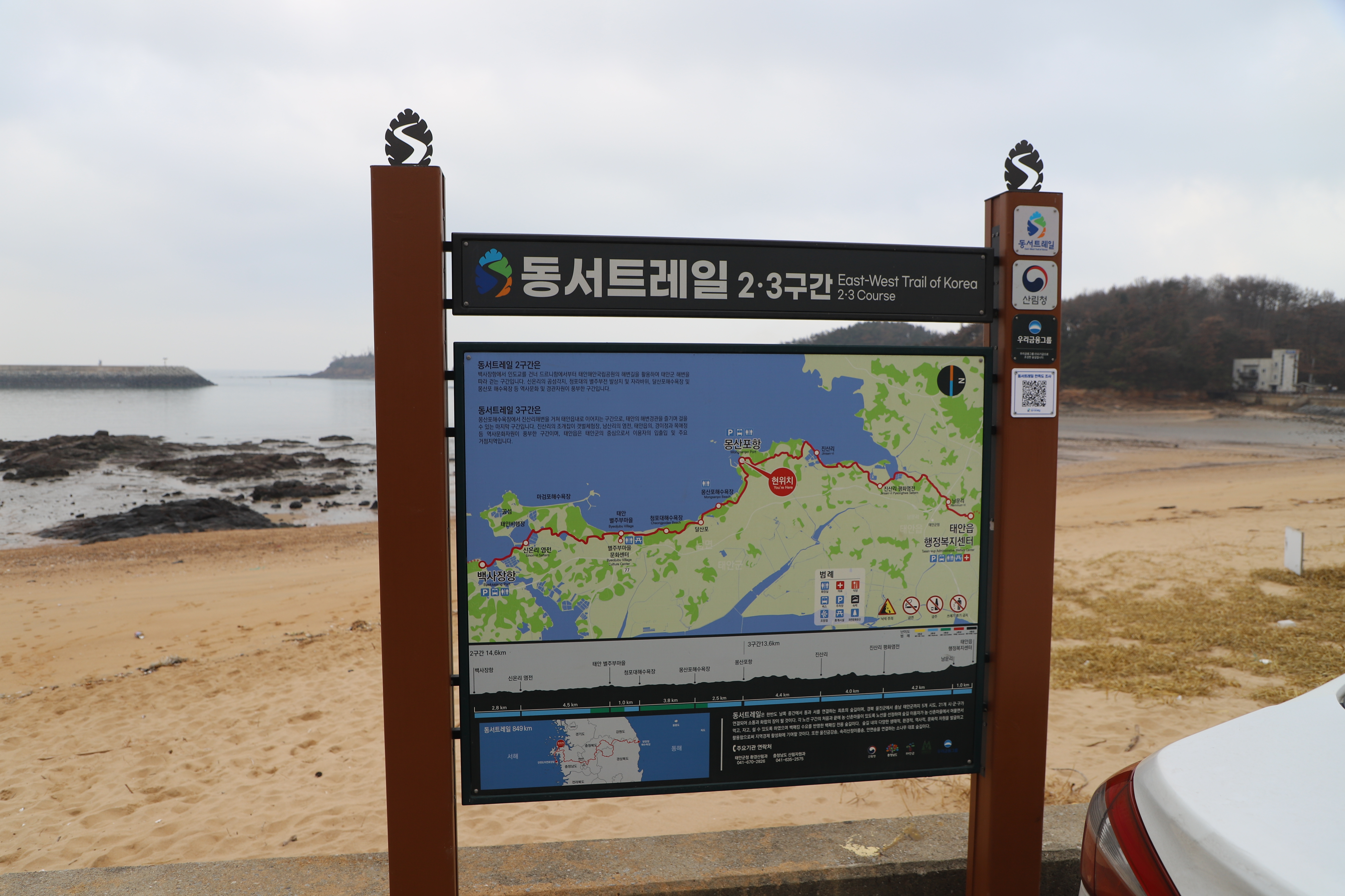 동서트레일 2·3구간 시종점에 동서트레일 2·3구간 안내판이 설치되어 있다. 2구간은 14.6km 거리이다. "동서트레일 2구간은 드르니항에서부터 태안해안국립공원의 해변길을 활용하여 태안군 해변을 따라 걷는 구간입니다. 신온리의 곰섬각지, 청포대의 별주부전 발상지 및 자라바위, 달산포해수욕장 및 몽산포해수욕장 등 역사문화 및 경관 자원이 풍부한 구간입니다."(안내판)