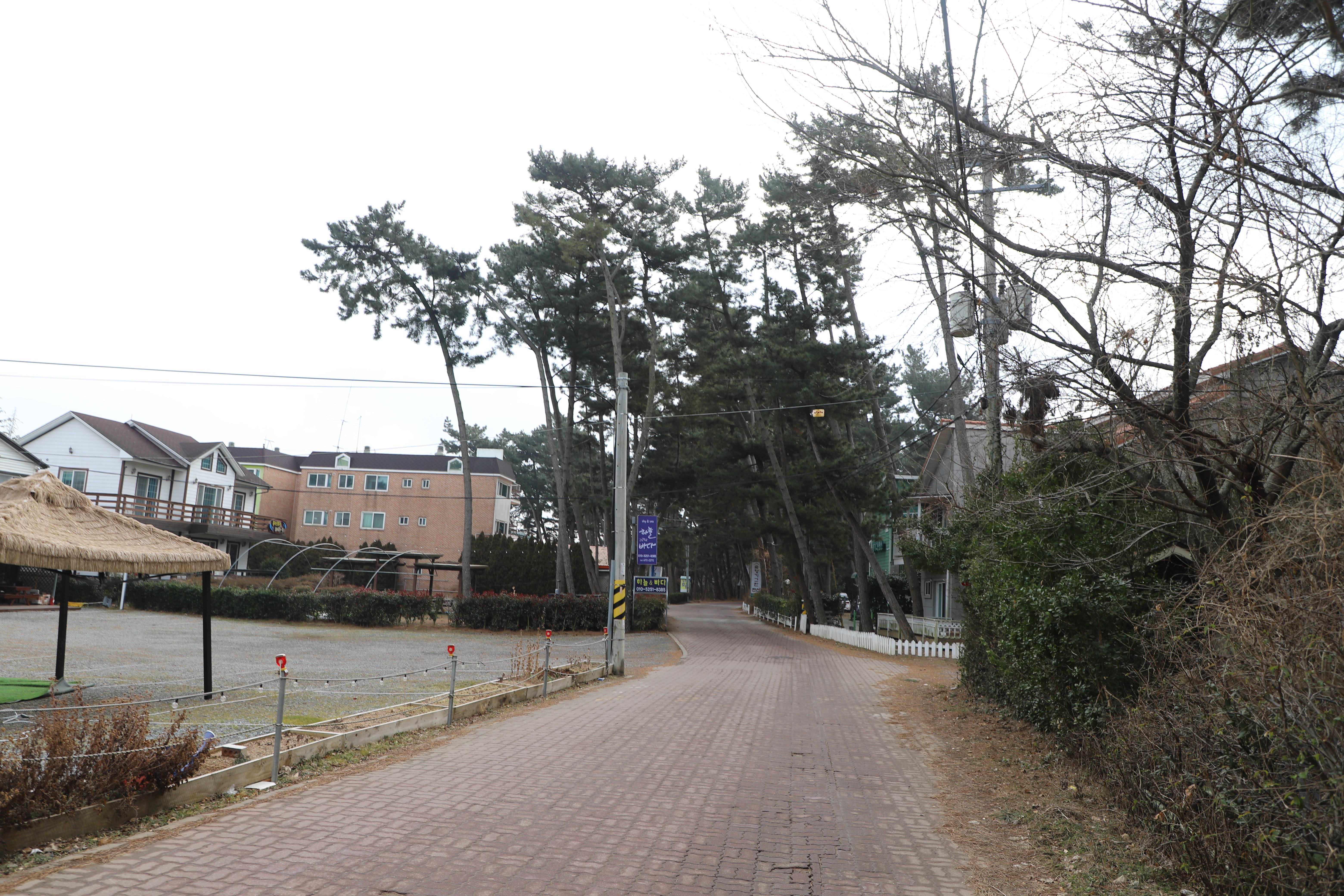 몽산포길을 따라 오른쪽은 블루오션 리조트, 왼쪽은 드림하우스 펜션을 지나간다.