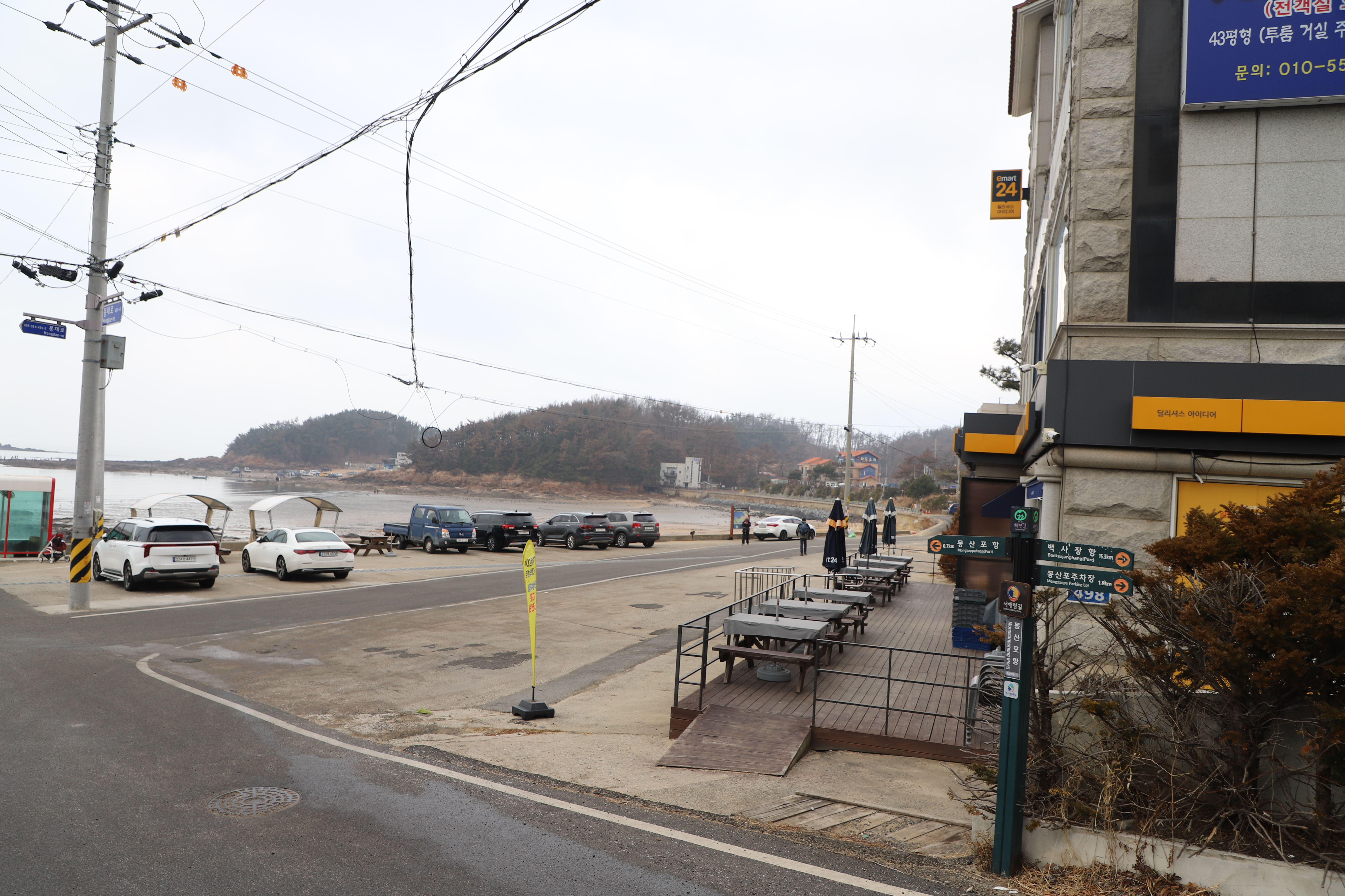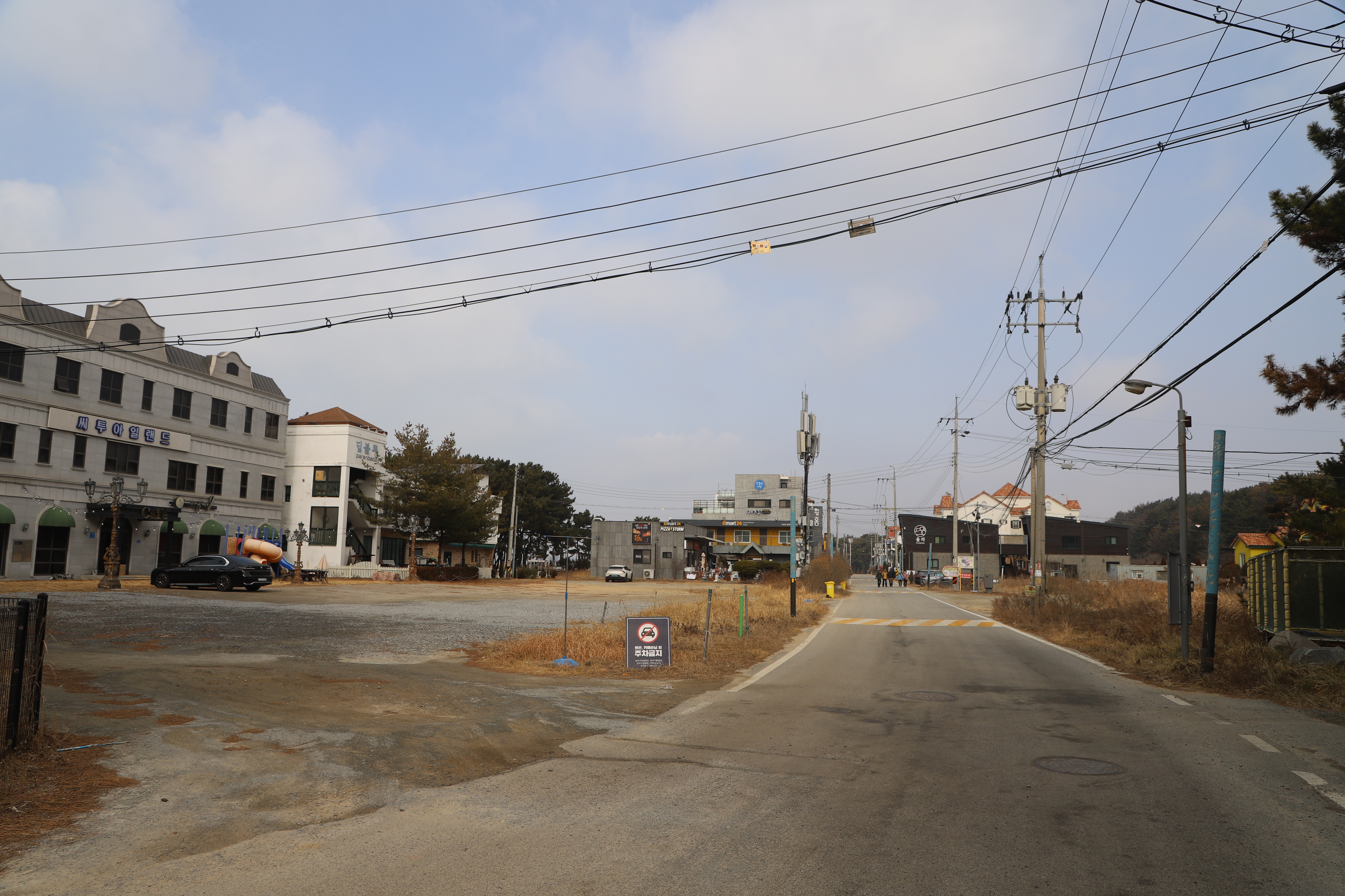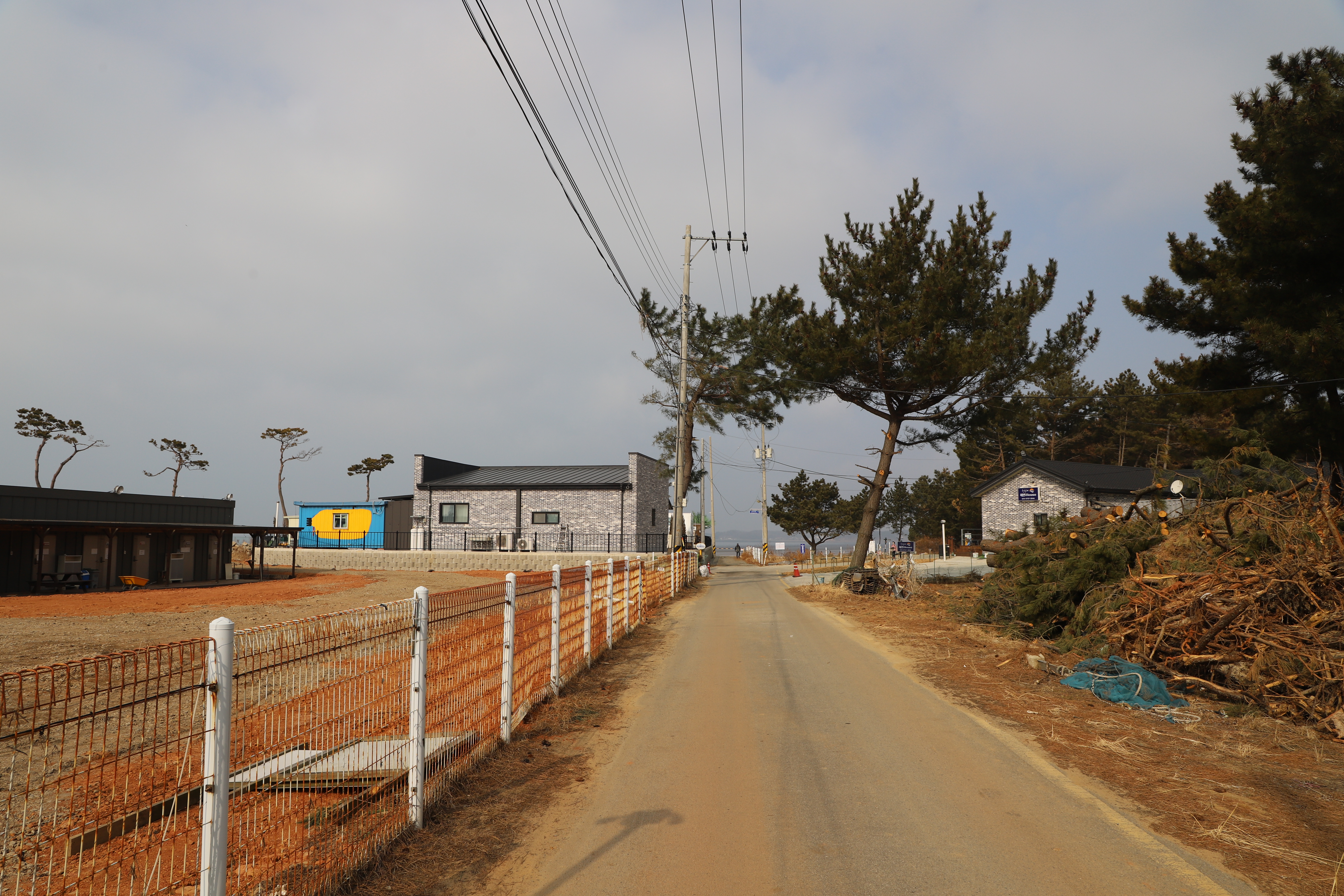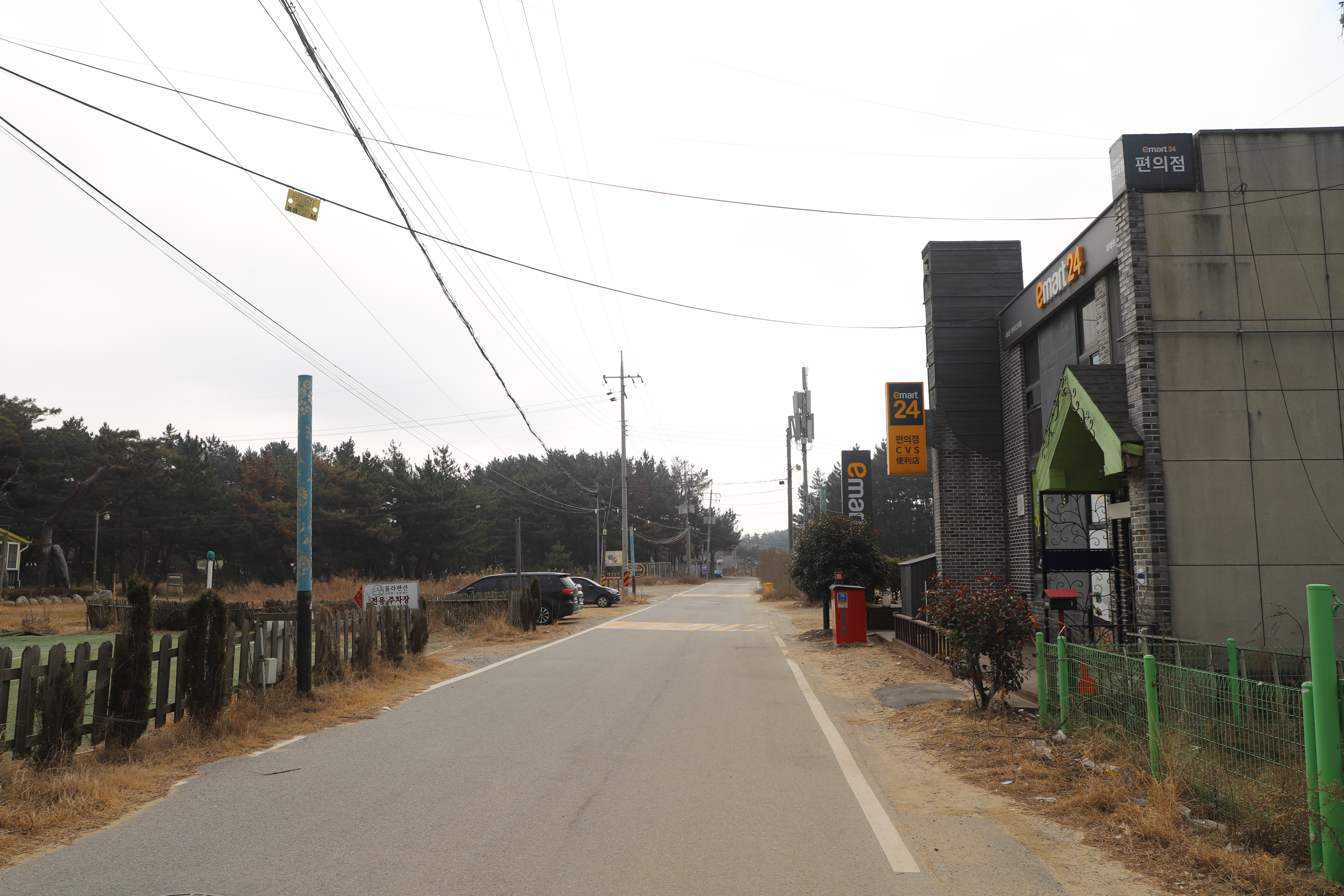 양잠리 지역의 청포대길을 따라 펜션촌과 야영장을 지나고 이마트 편의점을 거쳐 씨투아일랜드 글램핑장 앞까지 왔다.