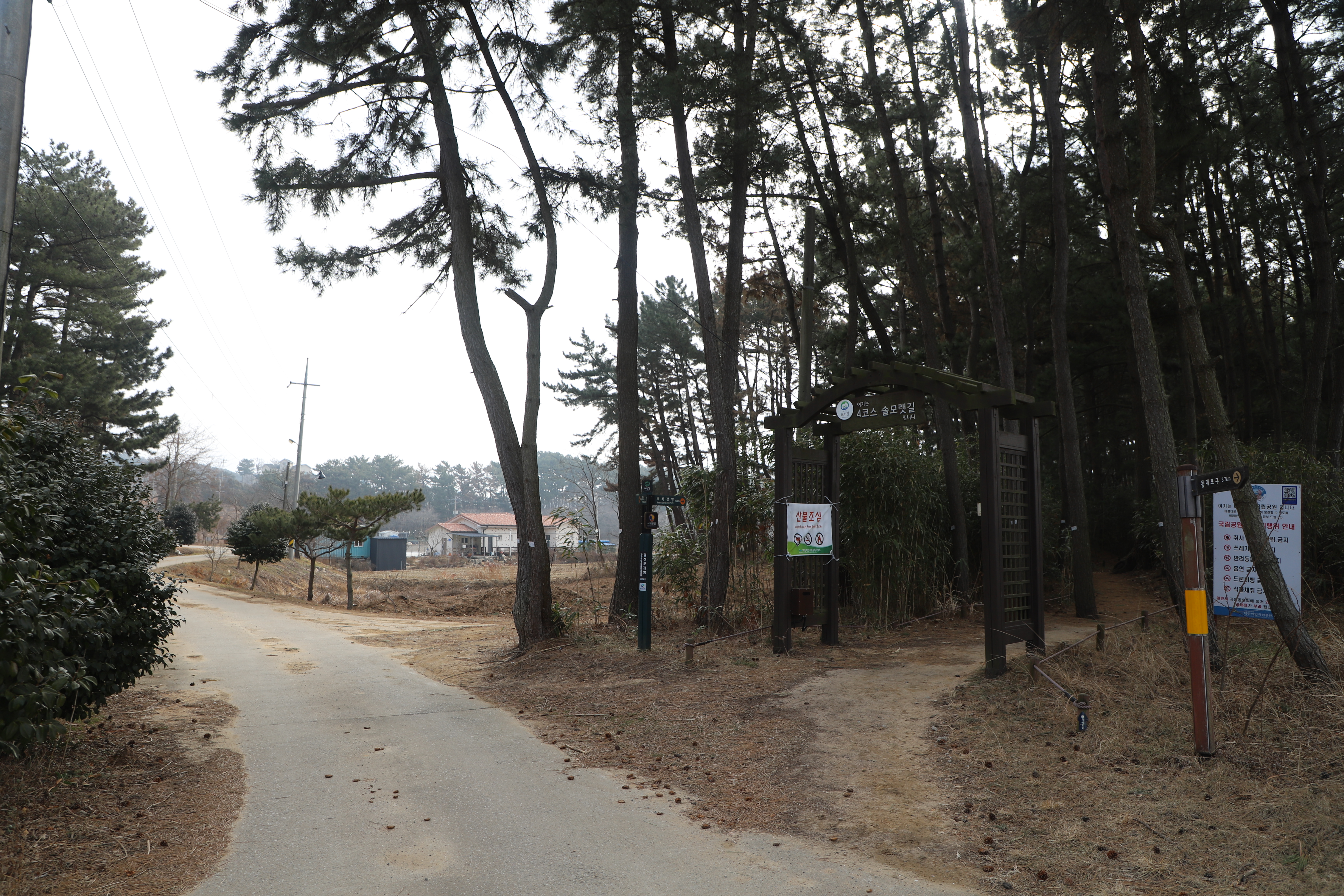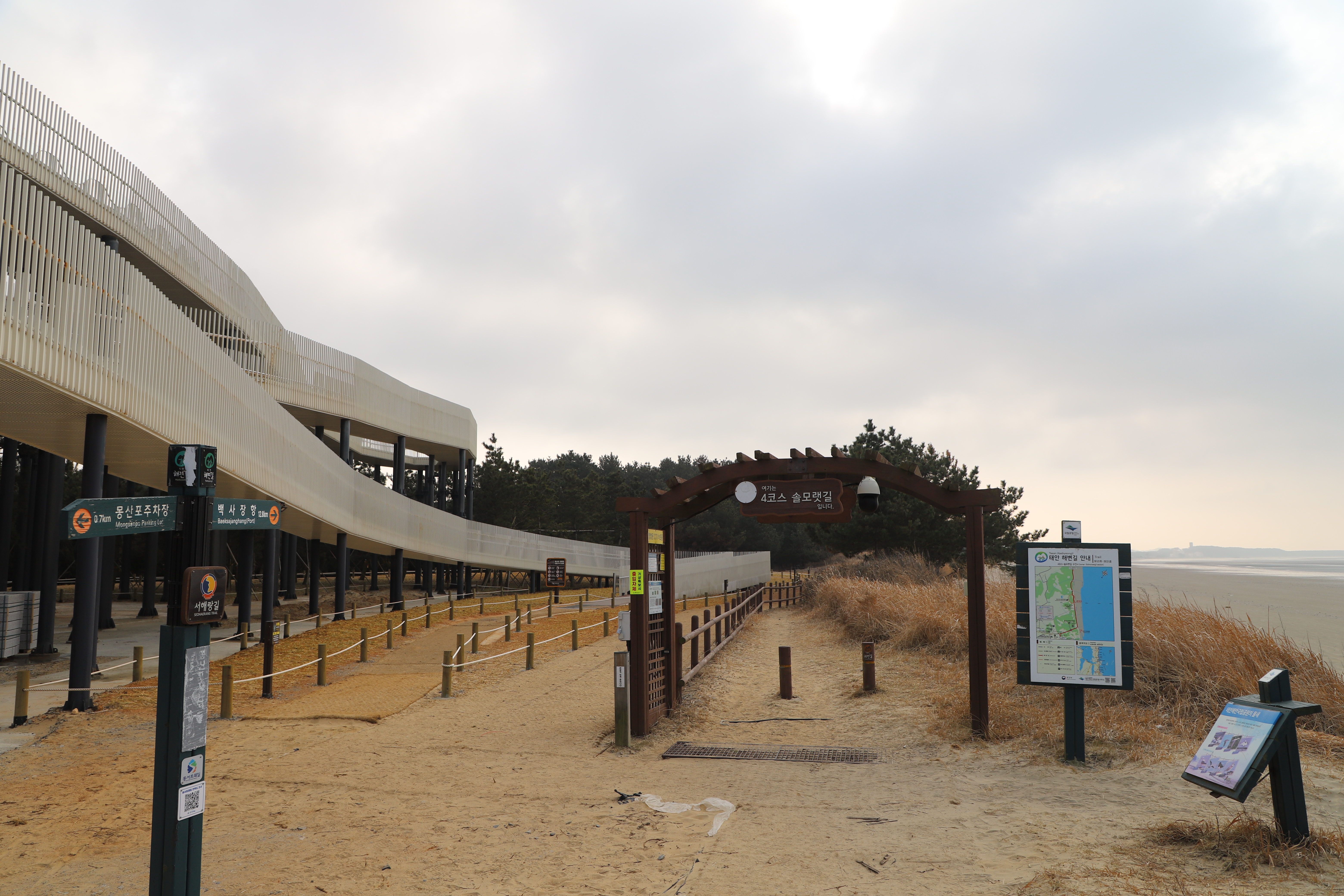 몽산포 전망대에서 내려와 출입구를 나가 태안해변길 4구간 솔모랫길 문주 앞으로 간다.