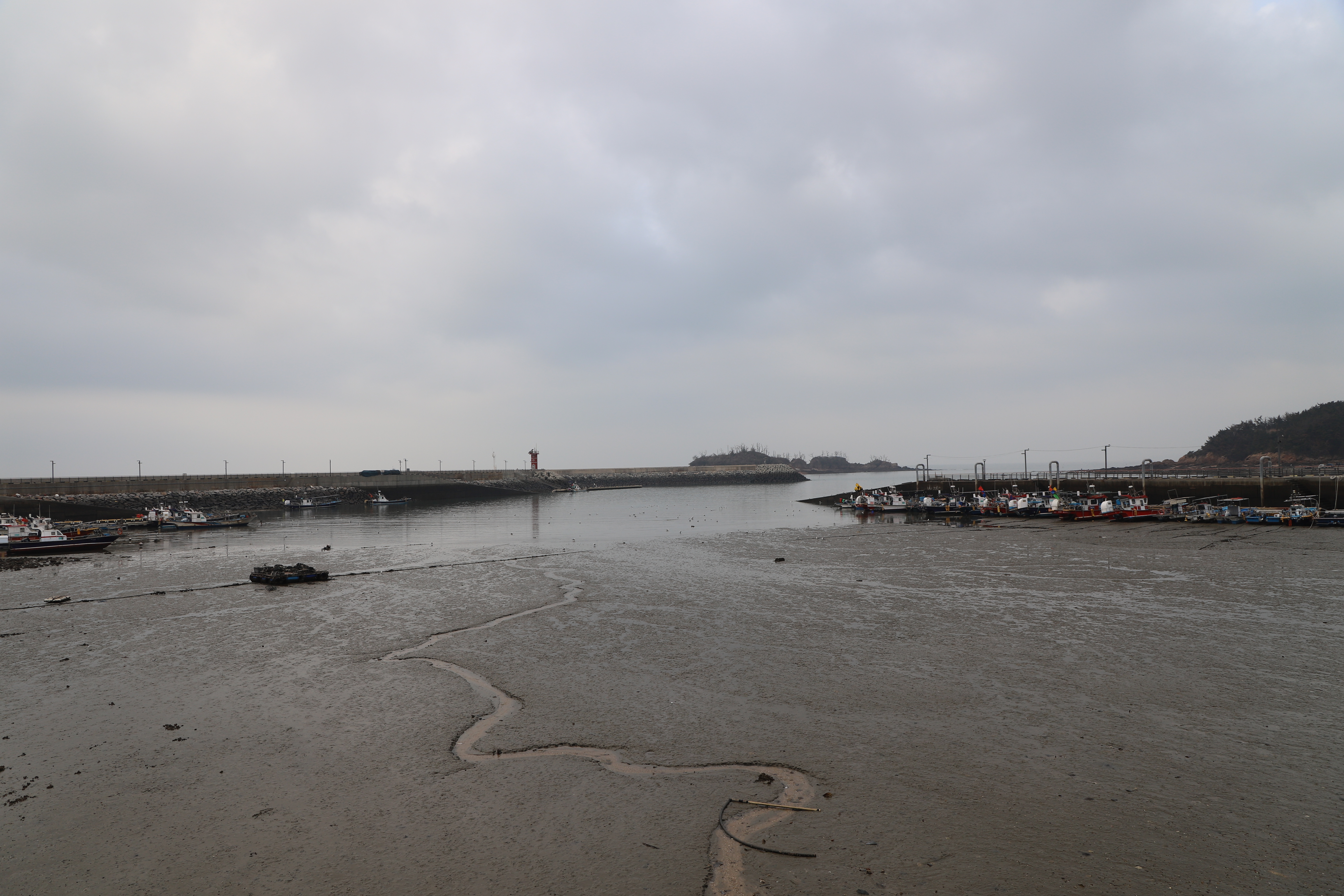 몽산포항에 아침 해무가 피어서 흐릿하다. 고양이 한쌍은 낯선 탐방객에 놀란 탓인지 으레 이 지역의 아침 풍경 탓인지 한 마리는 고개를 탐방객에게 돌려주고 한 마리는 웅크리고 그저 바다를 바라볼 뿐이다. 오형제섬이라고 불리는 안목도는 등대방파제 뒤쪽에서 오형제의 우애를 나누며 몽대포구를 안온하게 지켜준다. 몽대포구의 고적한 아침 풍경에 해루질을 떠나는 아낙들이 가벼운 바람을 일으켜 고요를 흔든다. 몽산포항 방파제 입구로 나가 풍경을 조망하였다. 몽산포항에서 동쪽으로 돌아 남쪽으로 이어지는 건너편의 몽산포 해수욕장과 그 남쪽 해안은 해무와 미세먼지의 유희에 흐릿하다.
