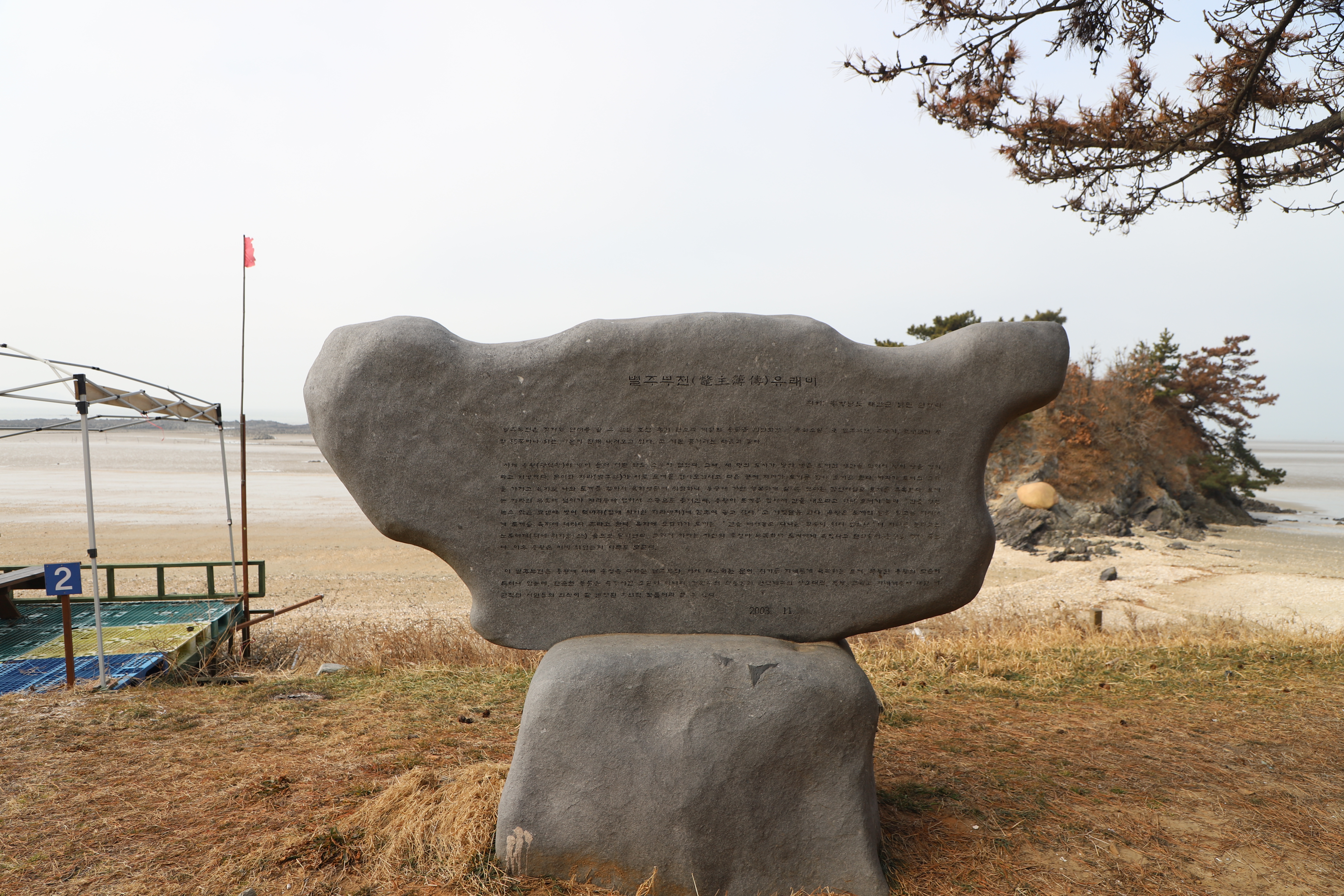 뒷면 : '별주부마을' 지정을 영원히 우리 마음에 담아 두고자 여기 원청리 회관터에 한 편의 시를 새겨 돌 하나를 세운다. 지은이 김종관 : 1943년 태안군 남면 출신. 시인, 수필가. 저서 : 마검포 외딴집 외 다수. 2012년 11월 23일 건립.