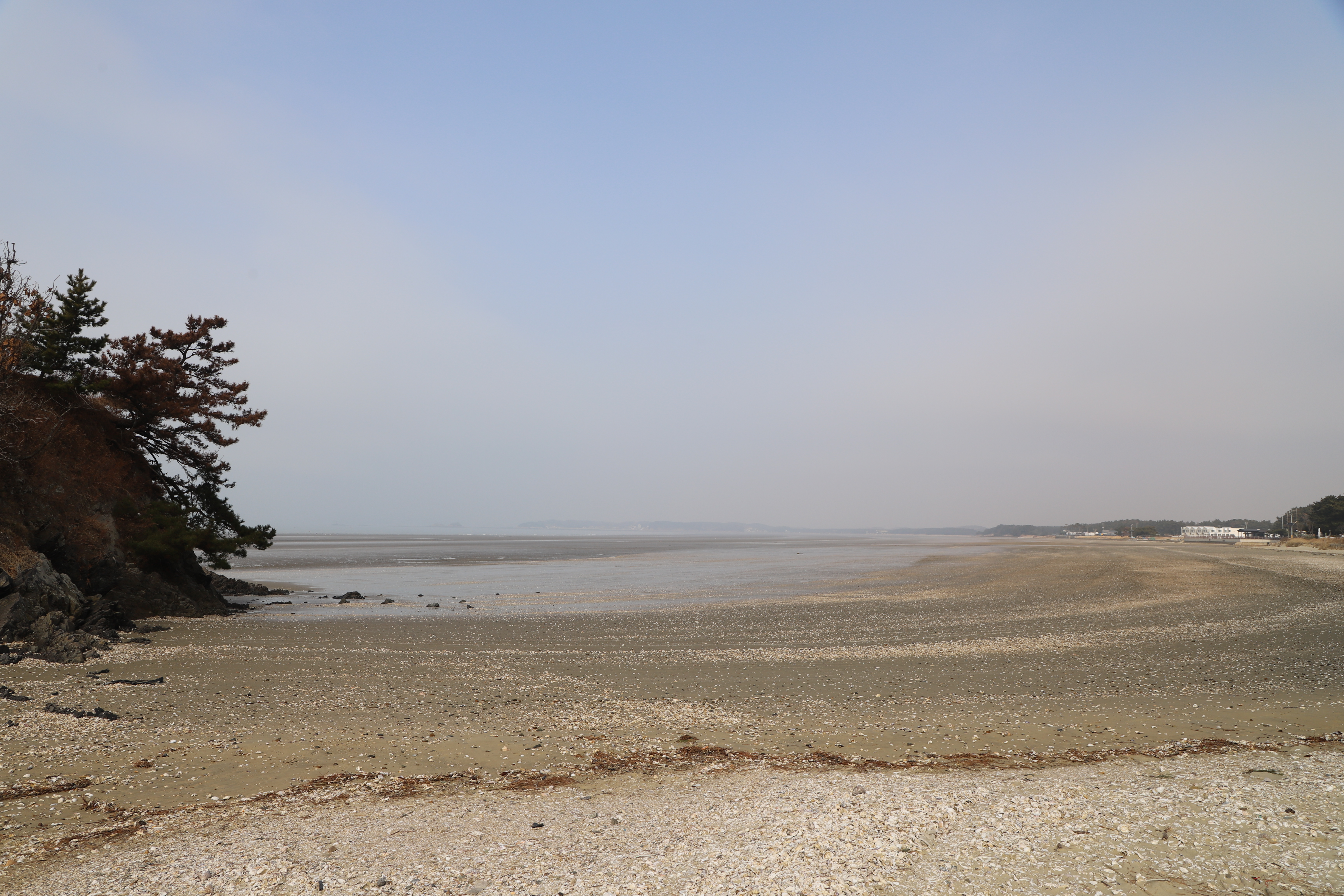 태안해양치유센터는 달산리와 양잠리 지역에 걸쳐 조성되어 있다. 해양치유센터와 치유의 숲을 나가면 청포대 해변이다. 해변에서 북쪽을 바라보면 몽산리 몽산포항으로부터 몽산포, 달산포, 그리고 바로 위 태양치유센터 아래 양잠 해변까지 이어지는 해변이 미세먼지에 가려 흐릿하지만 윤곽을 보여주며 몽대포구의 오형제섬(안목도)는 뭉개져 보인다.