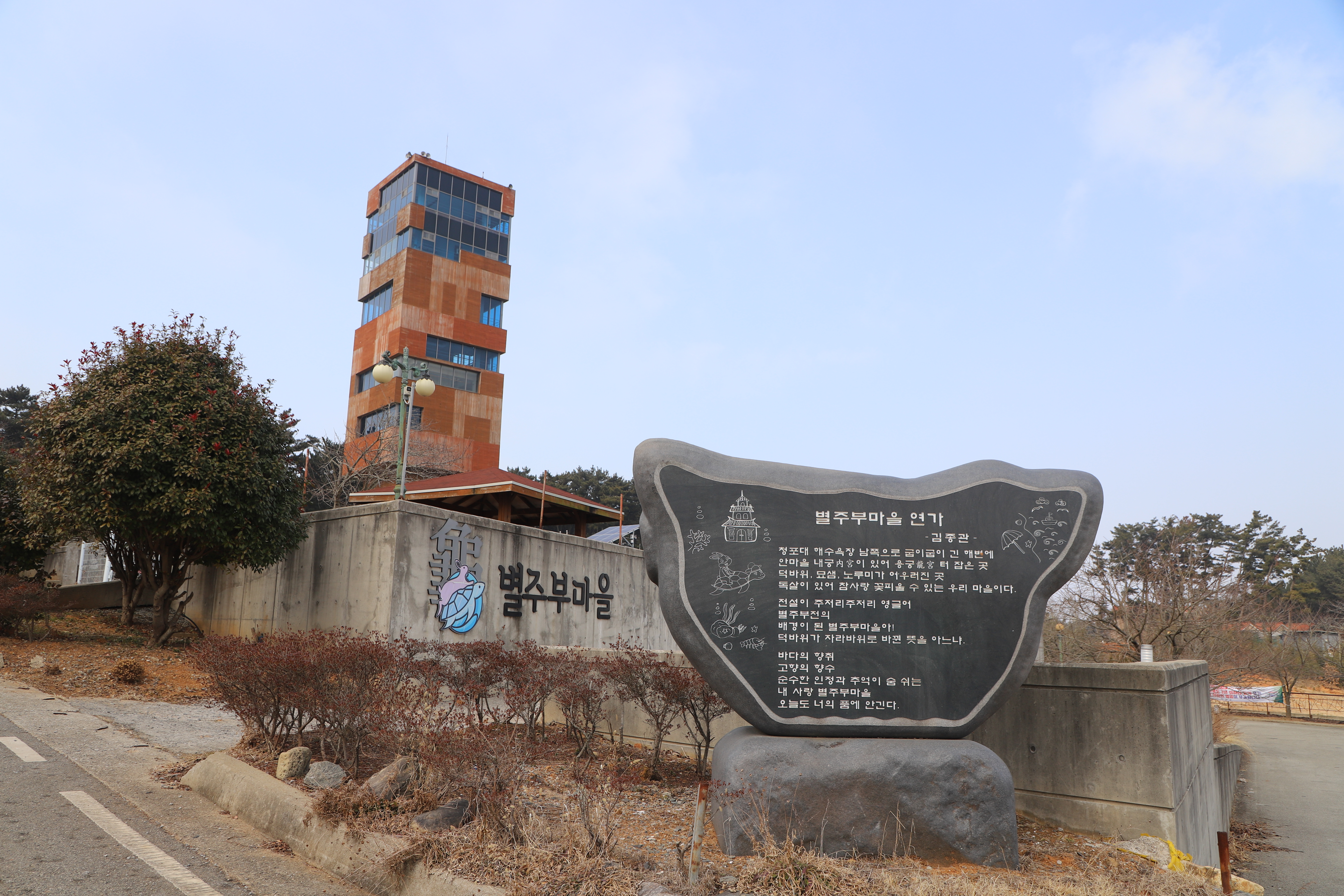 별주부마을 문화센터 정문 출입구 앞에 김종관의 '별주부마을 연가' 시비가 세워져 있다.