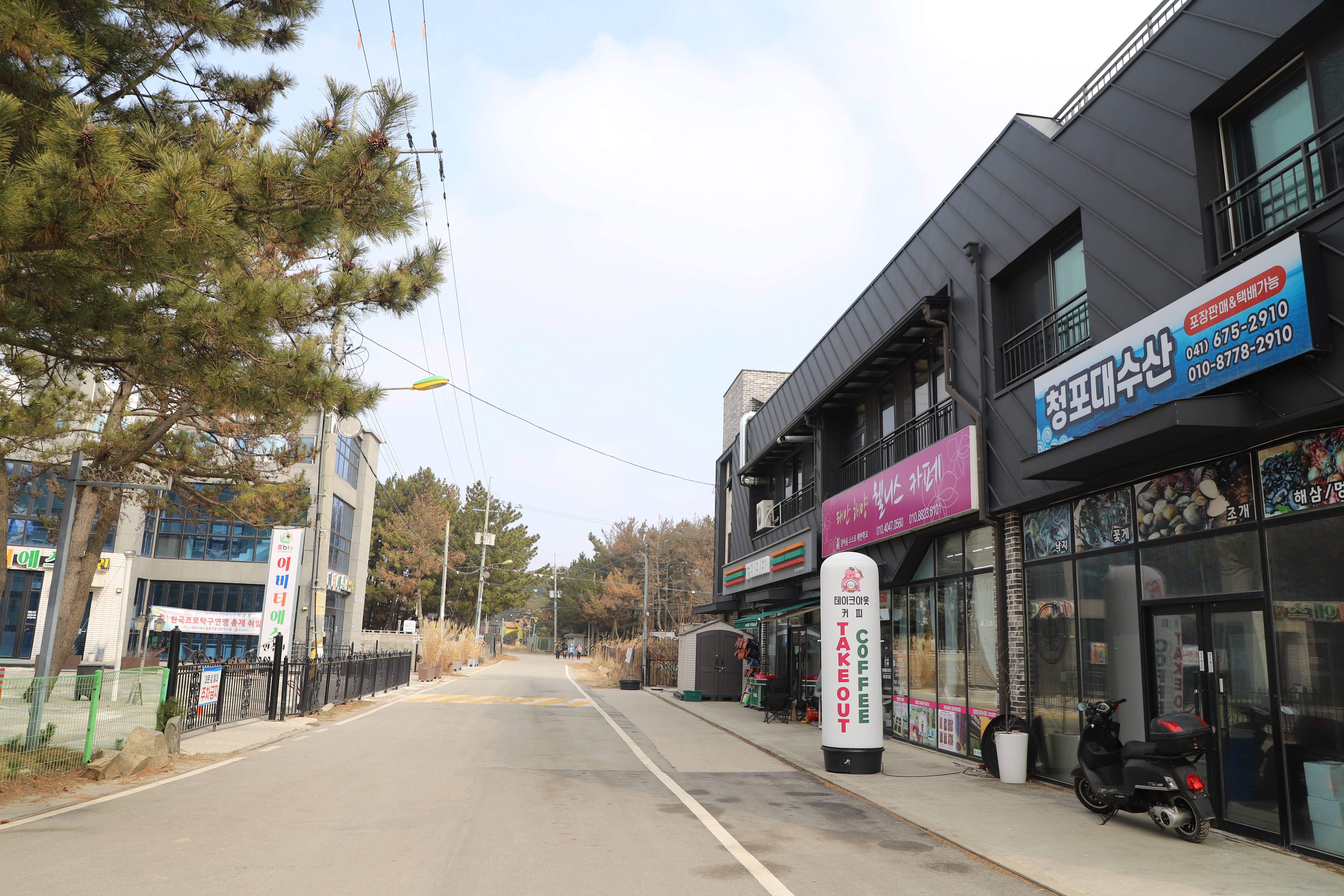 오른쪽에 씨투풀빌라 펜션과 청포대 휴야영장, 앞쪽에 해안가 풀빌라펜션이 있다. 이곳에서부터 남면 원청리 지역으로 넘어간다.