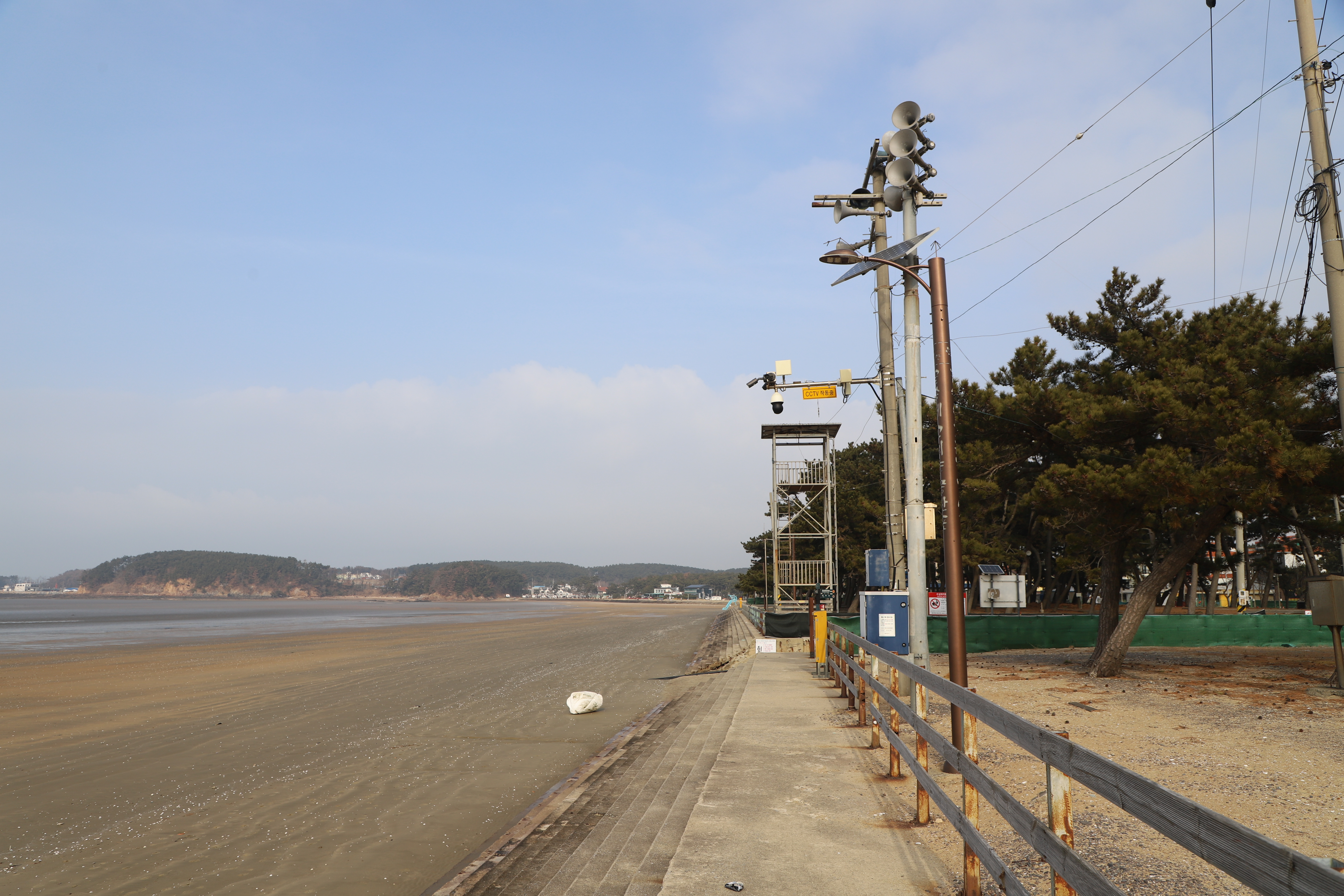 치유의 숲 나들목을 나가서 소나무가 있는 청포대길 왼쪽으로 따라간다. 오른쪽 해변으로 나가 잠시 해변을 살핀다.