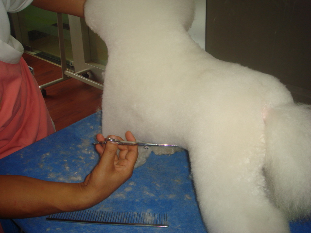 머리는 둥굴게 트리밍하고, 꼬리는 길게 남겨야한다.전체외관이 자연스러워야 하며 각이 있어서는 안된다.