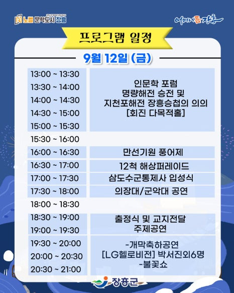 #장흥당일여행 #장흥이순신축제 #회령포 #코월드여행사 #이순신장군 #명량대첩 #전통문화축제 #전남가을축제