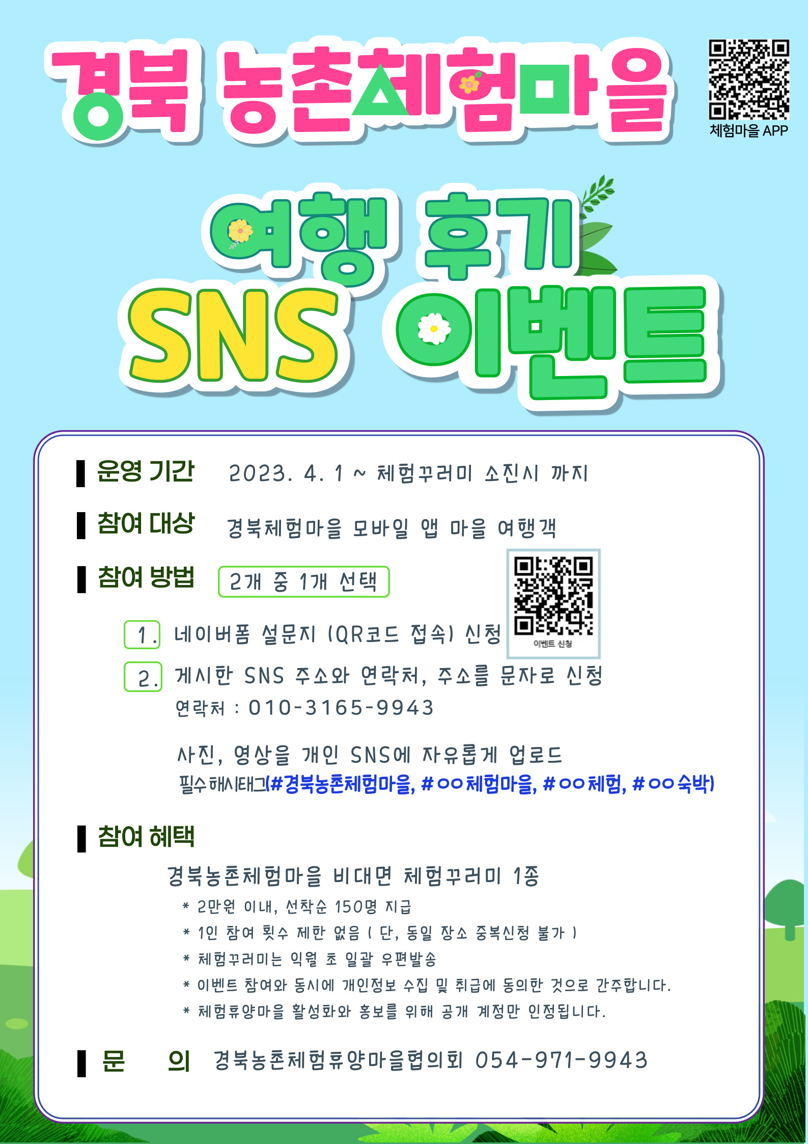 2023년 경북농촌체험마을 여행 후기 SNS 이벤트 작성자경북도협의회|작성시간23.03.28|조회수283 목록 댓글 0 글자크기 작게가 글자크기 크게가 다음검색 현재 게시글 추가 기능 열기 북마크 공유하기 신고 센터로 신고 댓글 댓글 0 댓글쓰기 답글쓰기 댓글 리스트