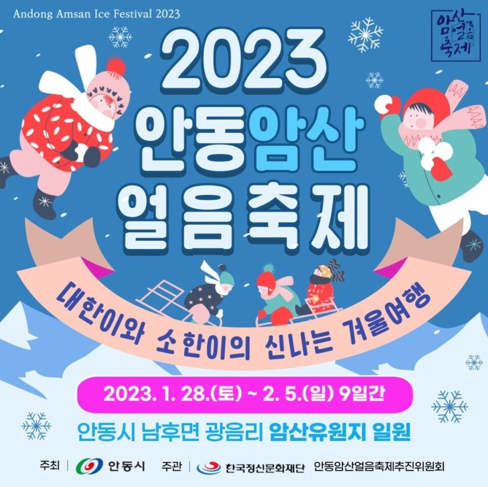| 더 즐거운 체험! 더 짜릿한 놀이! 천혜의 자연 절경을 고스랄히 간직한 안동 암산유원지에서 펼쳐지는 영남 최대 겨울축제!로 여러분을 초대합니다. 축제기간장 소개막행사개장시간프로그램 |