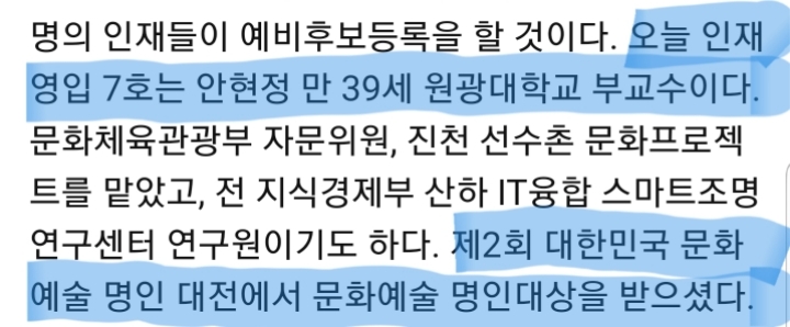 많은 분들이 우리공화당에 노크하고 있다. 25명 정도가 곧 예비후보등록을 할 것이다. 1차적으로 50여명의 인재들이 예비후보등록을 할 것이다. 오늘 인재영입 7호는 안현정 만 39세 원광대학교 부교수이다.문화체육관광부 자문위원, 진천 선수촌 문화프로젝트를 맡았고, 전 지식경제부 산하 IT융합 스마트조명 연구센터 연구원이기도 하다. 제2회 대한민국 문화예술 명인 대전에서 문화예술 명인대상을 받으셨다. 현직 원광대학교 부교수이신데 용기를 가지고 우리공화당에 입당을 한다. 오늘 인재영입 7호 기자회견을 했다. 기자들이 다 놀라고 있다. 모든 정당의 인재영입을 다 합쳐도 우리공화당을 못 따라가고 있다. 이것이 객관적인 평이다. 30여 명 정도가 날짜별로 인재영입 발표를 기다리고 있다. 우리공화당은 스토리를 가지고 인재영입 발표를 하고 있다. 안현정 교수와 같은 훌륭한 분을 영입하게 되어서 영광으로 생각한다.
