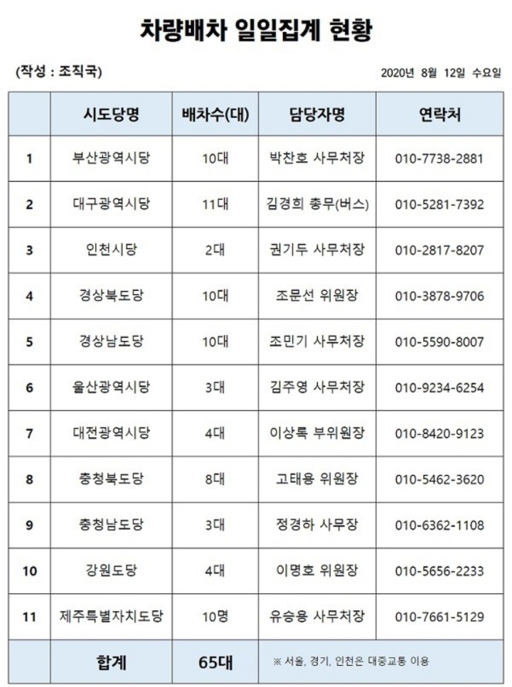 8월12일) 8.15 태극기 집회 전국시도당 차량 배차현황 작성자레이나|작성시간20.08.12|조회수185 목록 댓글 0 글자크기 작게가 글자크기 크게가 ㆍ 다음검색 현재 게시글 추가 기능 열기 북마크 공유하기 신고 센터로 신고 댓글 댓글 0 댓글쓰기 답글쓰기 댓글 리스트