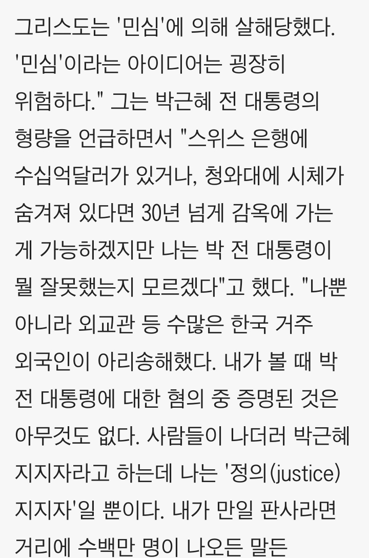 불법 사기 탄핵을 만들어 내기 위해서 민심이 마치 무슨 우주적 정당성이라도 되는 듯이 날뛰었었던 사악하고 무지한 언론과 잉간들이여! 그대들의 사악함과 무지와 어리석음으로 그대들의 자손들이 나라없이 다른 나라를 유리할 수 있음을 어찌 알겠는가?
