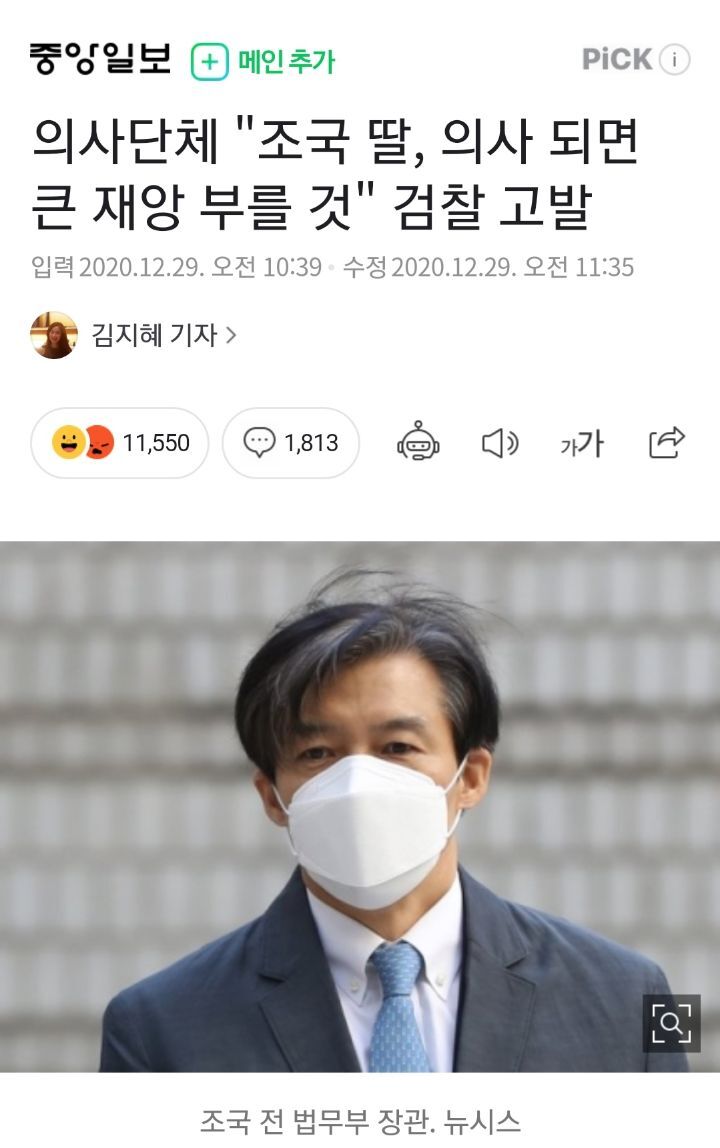 의사단체가 의학전문대학원(의전원) 입시에 허위 서류를 제출하는 등 부정입학 논란을 빚고 있는 조국 전 법무부 장관과 정경심 동양대 교수의 딸 조민씨를 검찰에 고발한다. 법원이 최근 정 교수의 자녀 입시비리 의혹 관련 혐의를 모두 유죄로 인정하고 법정 구속한 데 따른 것이다.