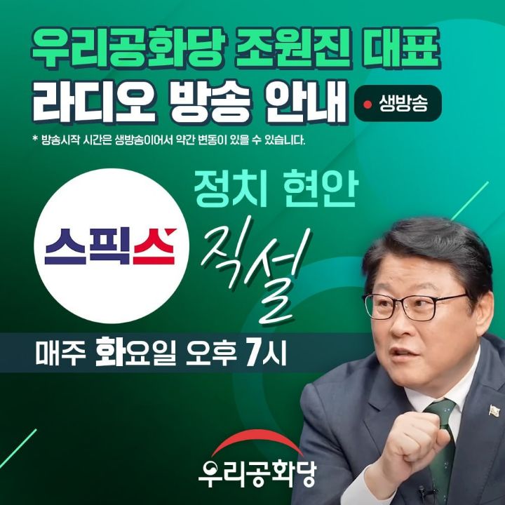 조원진 대표 유튜브 생방송이 있습니다.