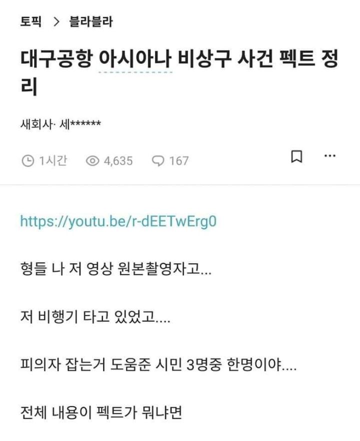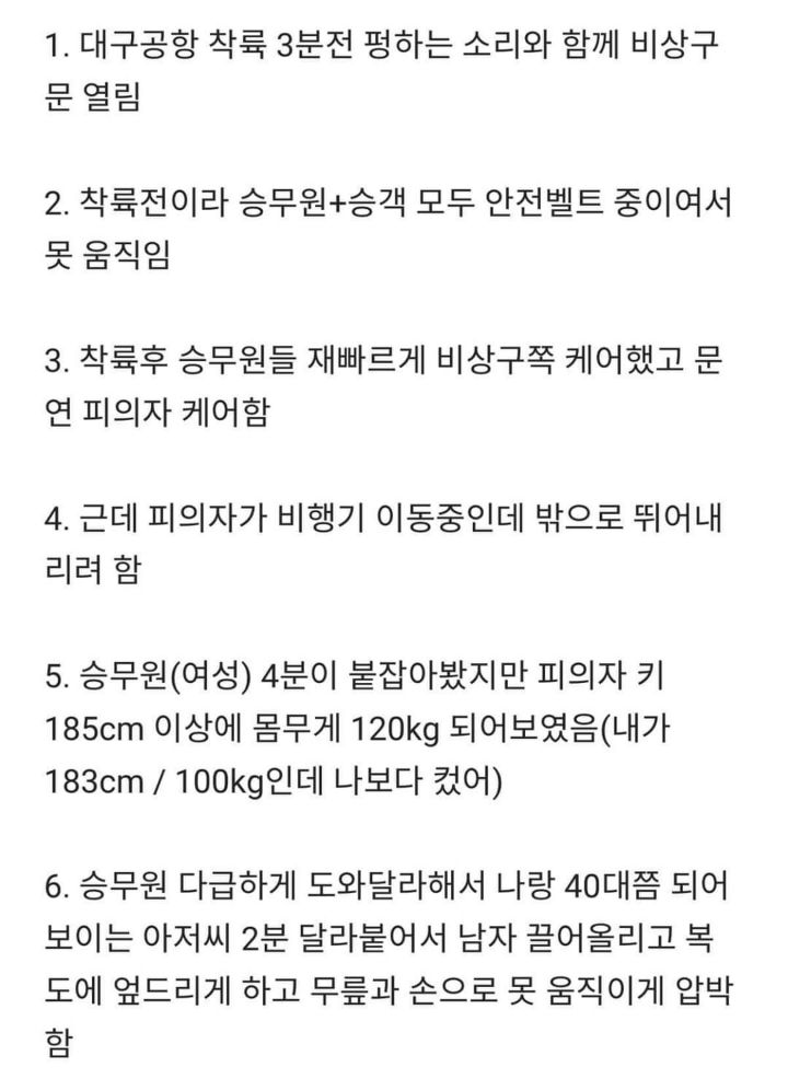 -대구공항에 착륙하려던 비행기의 출입구를 연 30대 남성은 185cm의 키에 120kg 체격이 컸다고