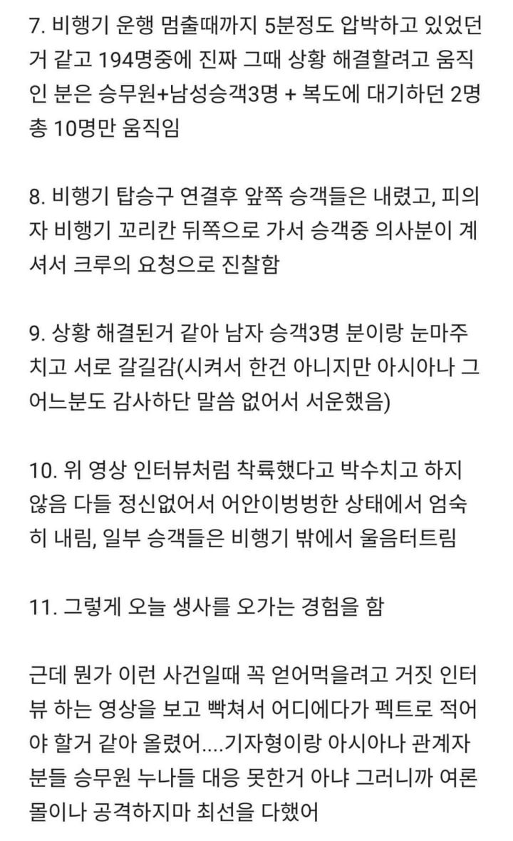 -그럼에도 사고를 친 남성이 뛰어내리려고 하는걸 승무원들과 승객들이 온 몸으로 막아냄