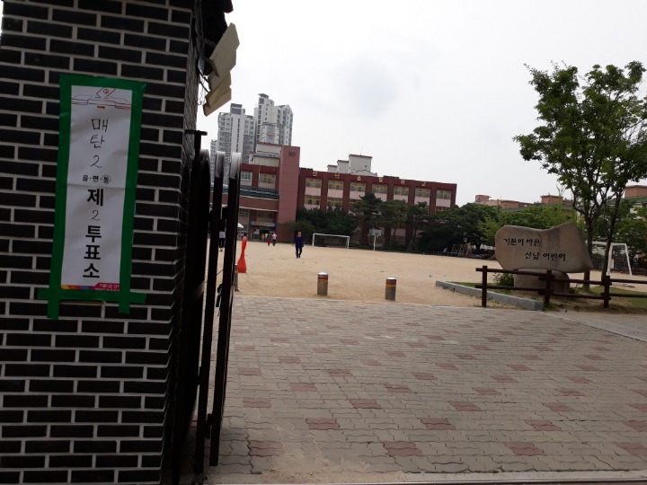 아침 9시, 아들과 함께 수원의 제 지역구 투표소에 같습니다.
