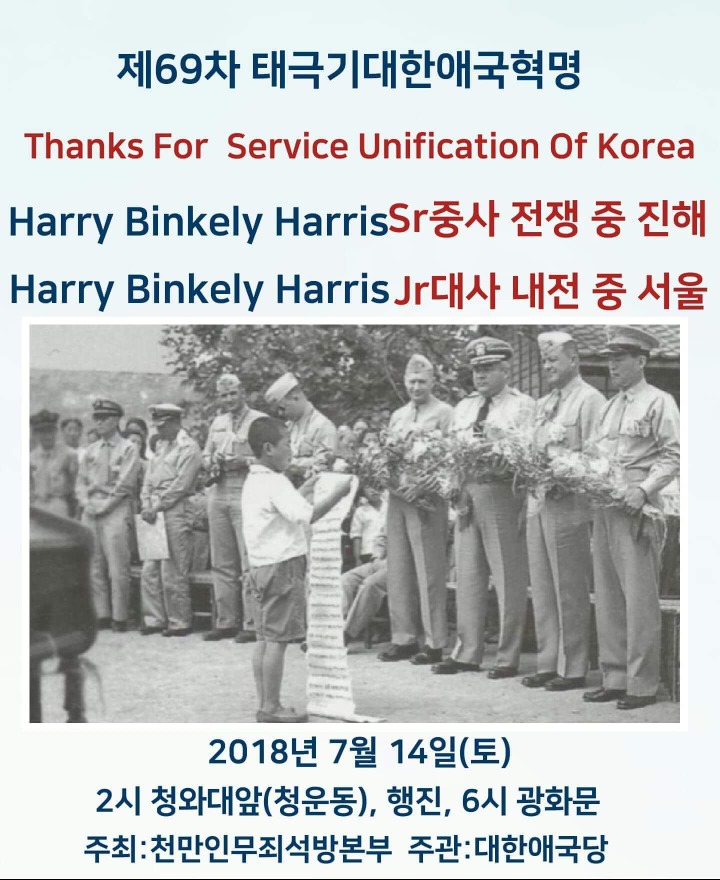포스터 3 : 휴전 후 진해 해군사관학교 미 해군 교육단 철수 때 미 해군고문단(장교 부사관 등 해리스중사 포함)에게 장문의 감사편지를 읽는 모습,