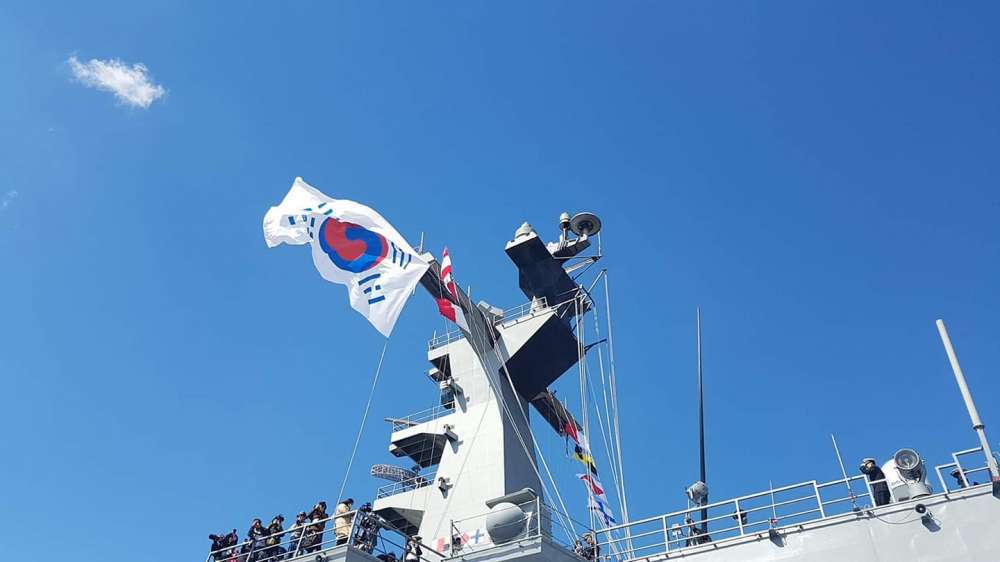 특히 눈길을 끈 건 독도함에 걸린 옛 태극기였다. 지금의 대한민국 태극기와 함께 독도함에 걸린 이 태극기는 일명 '데니 태극기'라고 불린다.