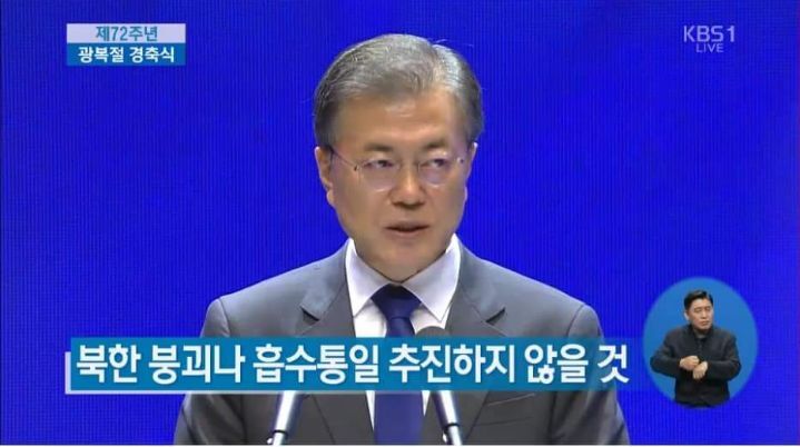 문재인은 취임하자 마자 바로 통일을 추진하지 않을 거라고 공포함.