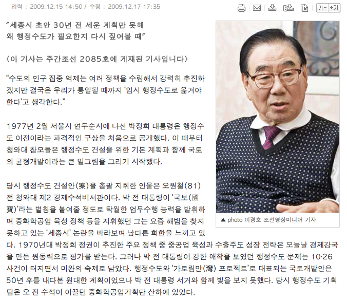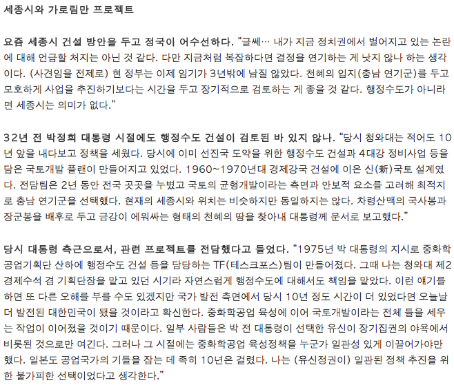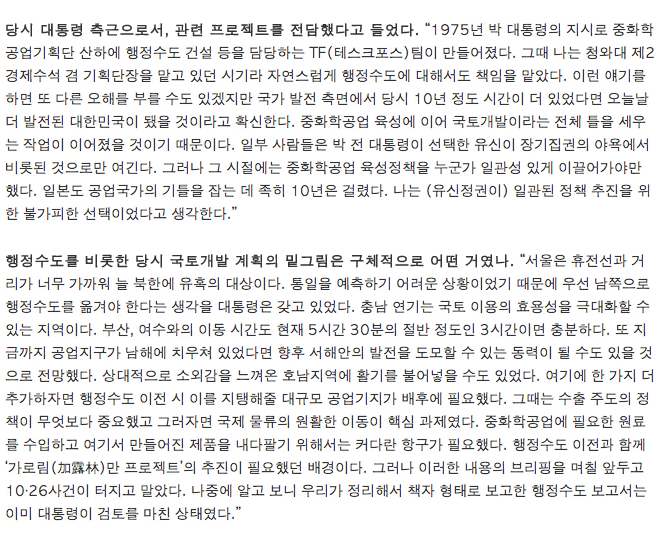 참고 - 조선일보 기사, KBS역사스페셜 '박정희 최후의 프로젝트 수도를 이전하라'
