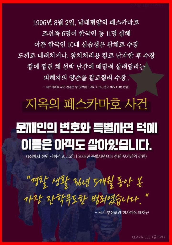 ‘페스카마15호’ 사건 가해자들도 동포로서 따뜻하게 품어줘야 하고 지금도 그 생각에는 변함이 없다”라고 밝혔다.
