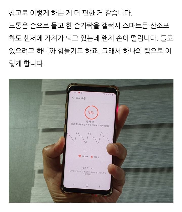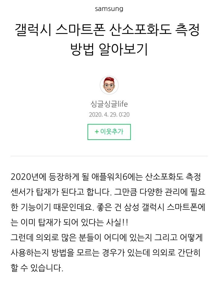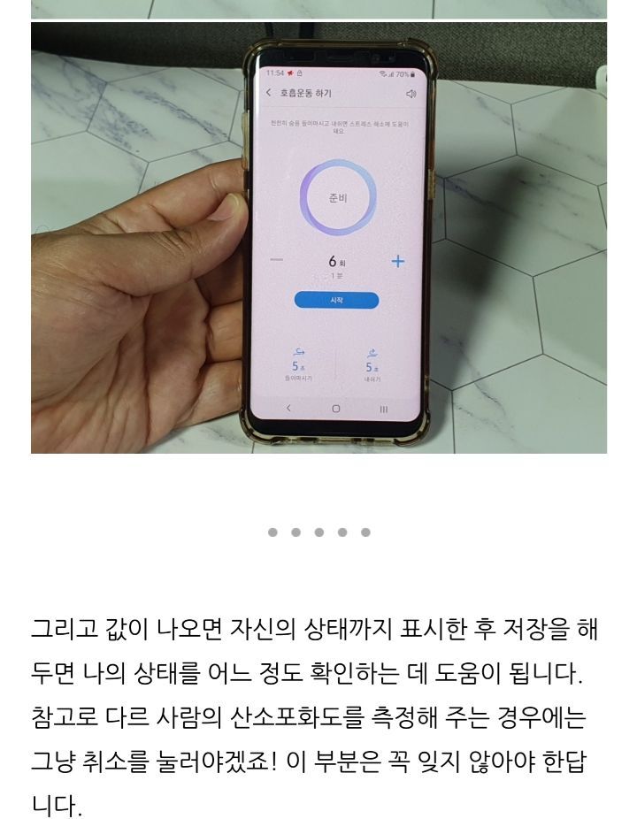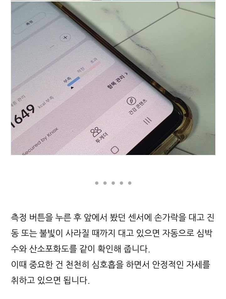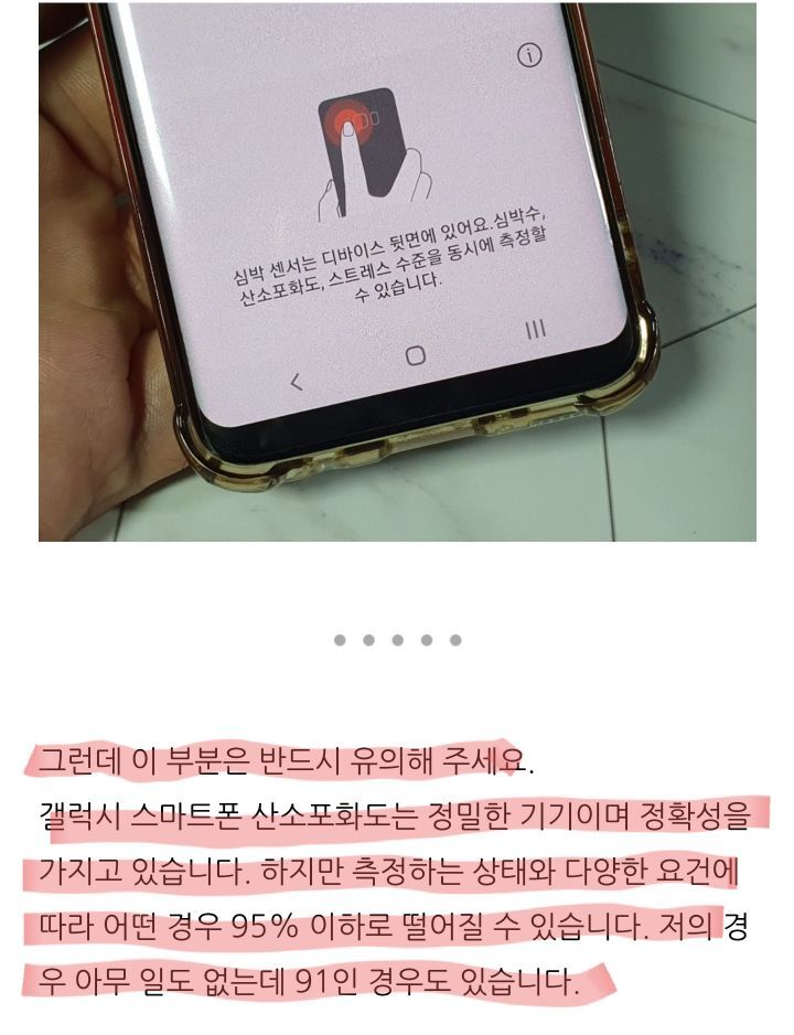 갤럭시 스마트폰 산소포화도 측정방법 알아보기.(꼭 이용하세요.) 작성자지킴이|작성시간21.02.03|조회수729 목록 댓글 0 글자크기 작게가 글자크기 크게가 손가락 대는곳.보이지않는다구요?항목관리https://m.blog.naver.com/PostView.nhn?blogId=gkrwja88&logNo=221935009428&proxyReferer=https:%2F%2Fm.search.naver.com%2Fsearch.naver%3Fsm%3Dmtb_hty.top%26where%3Dm%26oquery%3D%25EC%2582%25B0%25EC%2586%258C%25ED%258F%25AC%25ED%2599%2594%25EB%258F%2584%2B%25EC%25B8%25A1%25EC%25A0%2595%25EA%25B8%25B0%26tqi%3Dhto2ldprvPKssjU8OqlssssstBN-132752%26query%3D%25EC%258A%25A4%25EB%25A7%2588%25ED%258A%25B8%25ED%258F%25B0%25EC%259C%25BC%25EB%25A1%259C%2B%25EC%2582%25B0%25EC%2586%258C%25ED%258F%25AC%25ED%2599%2594%25EC%25B8%25A1%25EC%25A0%2595갤럭시 스마트폰 산소포화도 측정 방법 알아보기2020년에 등장하게 될 애플워치6에는 산소포화도 측정 센서가 탑재가 된다고 합니다. 그만큼 다양한 관리에...blog.naver.com아래는 제가 측정해본겁니다.손가락 바꿔가면서 몇번해보세요. 다음검색 현재 게시글 추가 기능 열기 북마크 공유하기 신고 센터로 신고 댓글 댓글 0 댓글쓰기 답글쓰기 댓글 리스트