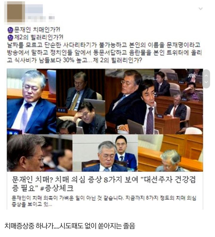 (아래는 디씨인사이드에 올라온 '문재인 치매 의심사유 총정리' 캡쳐본)