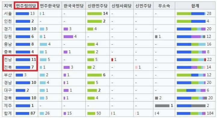 '민주정의당'의 전남/전북 결과가 아주 놀랍죠?