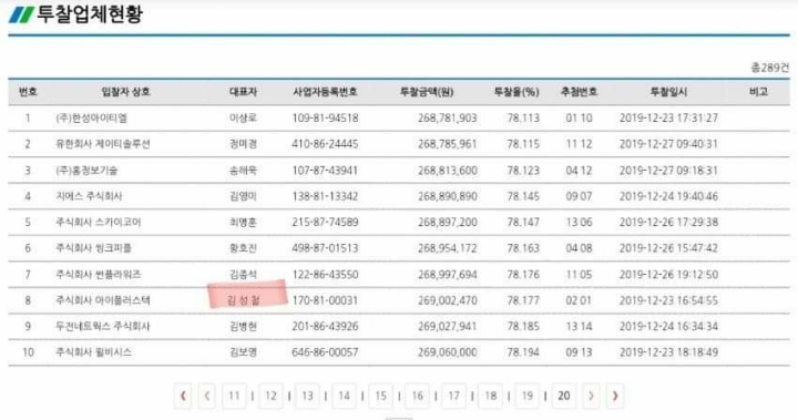 (첨부: 김 성 철 이름이 띄어쓰기 되어 있는 입찰참가 업체 리스트)