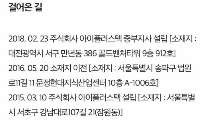 (첨부: 아이플러스텍 홈피 기업부설연구소는 빌딩 2층 전체를 본사 주소로 기재할 수 있는 사기성 비상주사무실)