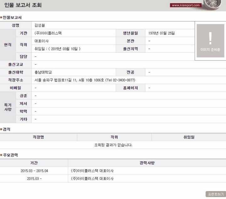 그렇다면, 78년생으로 온갖 대한민국 정부 사업을 단독 입찰한 초엘리트 CEO 김 성 철 에 대한 NICE 신용정보 인물보고서 리포트를 보자