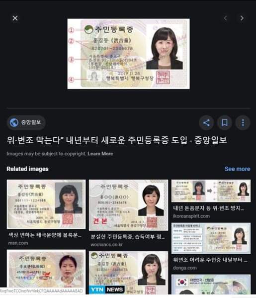 (첨부: 정상적인 한국인의 주민등록증 이미지)