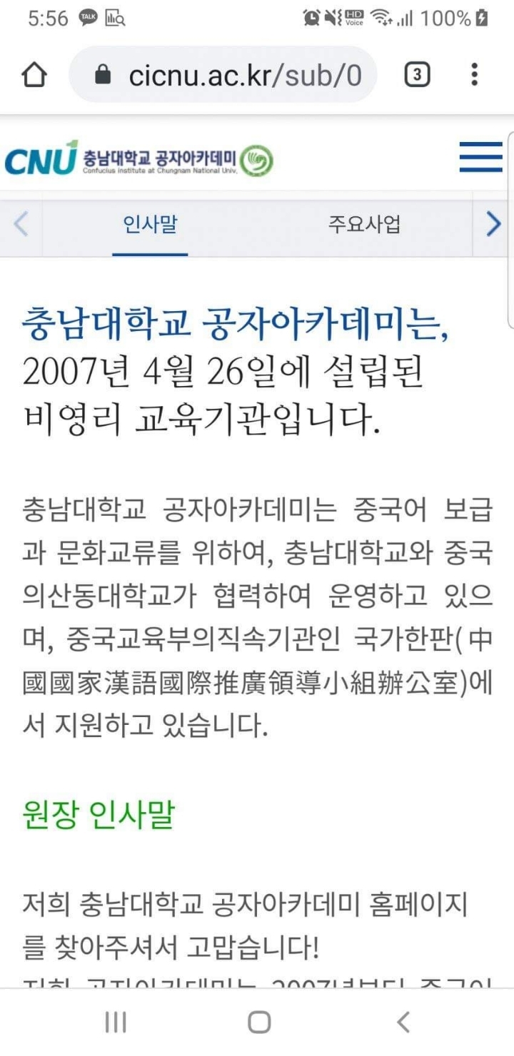 (첨부: 충남대학교 공자아카데미 홈페이지 캡춰본)