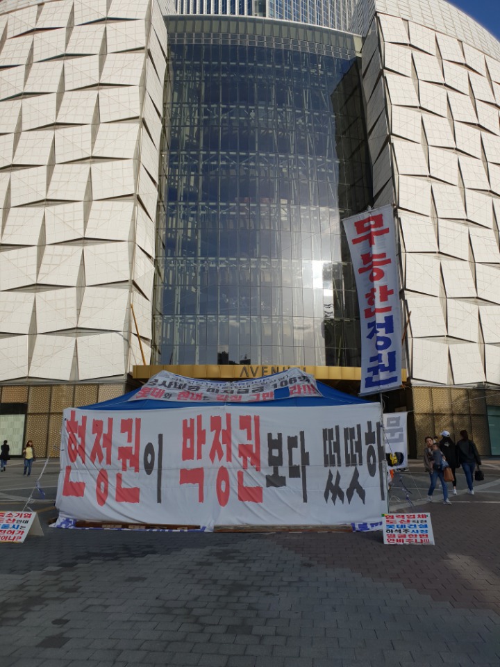뉴롯데 정문을 몇달째 정면으로 가로막고 영업방해를 합니다