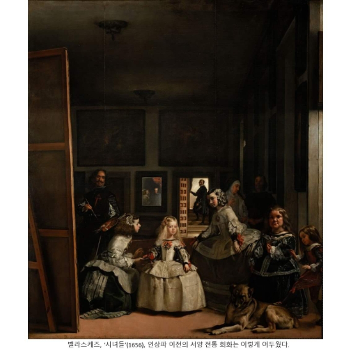 흔히 서양 회화라면 화려한 색채를 연상한다. 그러나 그건 인상파 그림만을 서양회화로 생각하기 때문이다. 인상파 이전까지의 서양 전통 회화는 거의가 짙고 어두운 색깔로 두텁게 칠해져 있었다. 벨라스케즈의 유명한 그림 '시녀들'을 보고 “아니 그림이 왜 이렇게 어둡냐?”고 놀라는 사람들이 많다.
