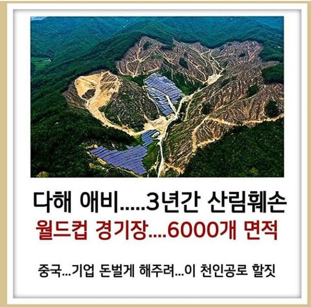 다해 애비 3년간 산림훼손 월드컵 경기장 6,000개 면적 작성자천리안|작성시간20.08.08|조회수430 목록 댓글 0 글자크기 작게가 글자크기 크게가 다음검색 현재 게시글 추가 기능 열기 북마크 공유하기 신고 센터로 신고 댓글 댓글 0 댓글쓰기 답글쓰기 댓글 리스트