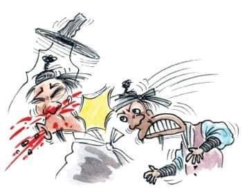 어깨가 떡 벌어진 젊은 선비가 지 생원의 멱살을 잡고 들어올렸다. 허공에 뜬 두 발을 버둥거리던 지 생원이 목이 졸려 캑캑거리면서도 번개처럼 박치기로 젊은 선비의 면상을 들이받고 양발로 사타구니를 걷어찼다. 선비도 말 옆에 뻗었지만 이승을 하직한 건 아니고, 코가 내려앉고 불알이 퉁퉁 부어올랐다.