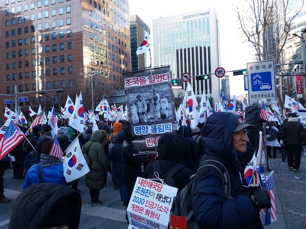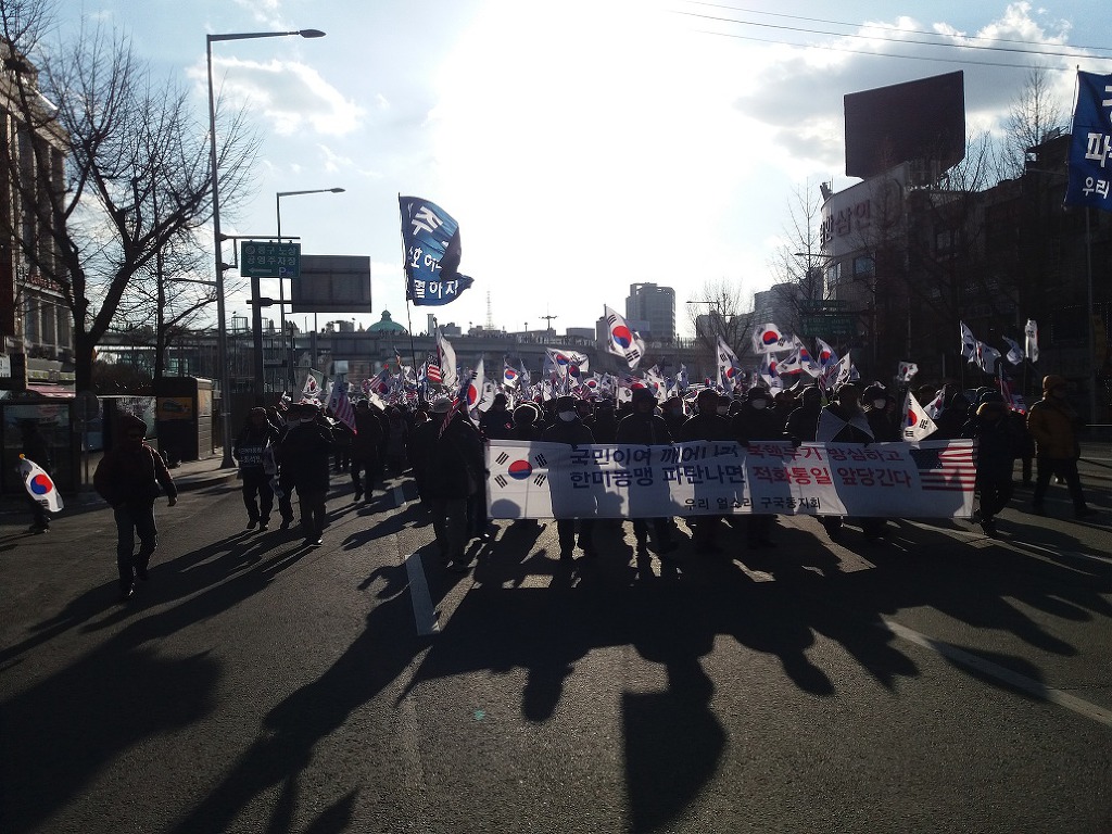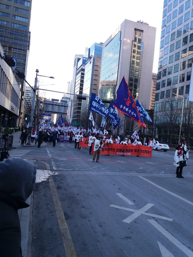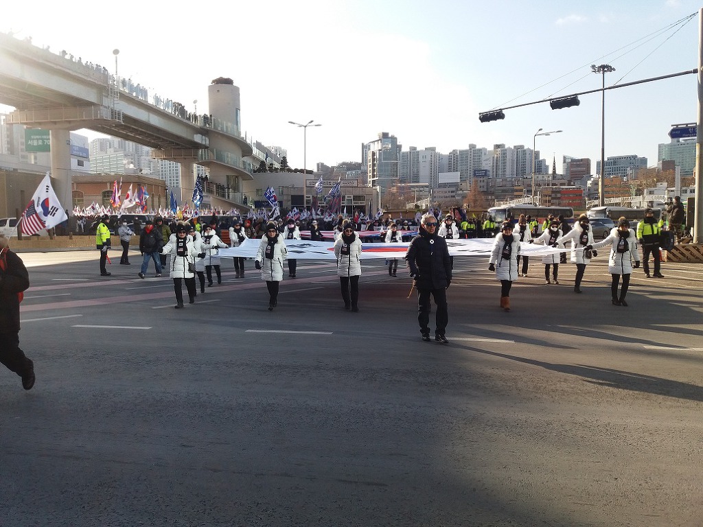 고가위의 사람들도 워낙 추워서 지난번보다 적지만 아래 행진하는 태극인들은 더 많아 졌습니다.
