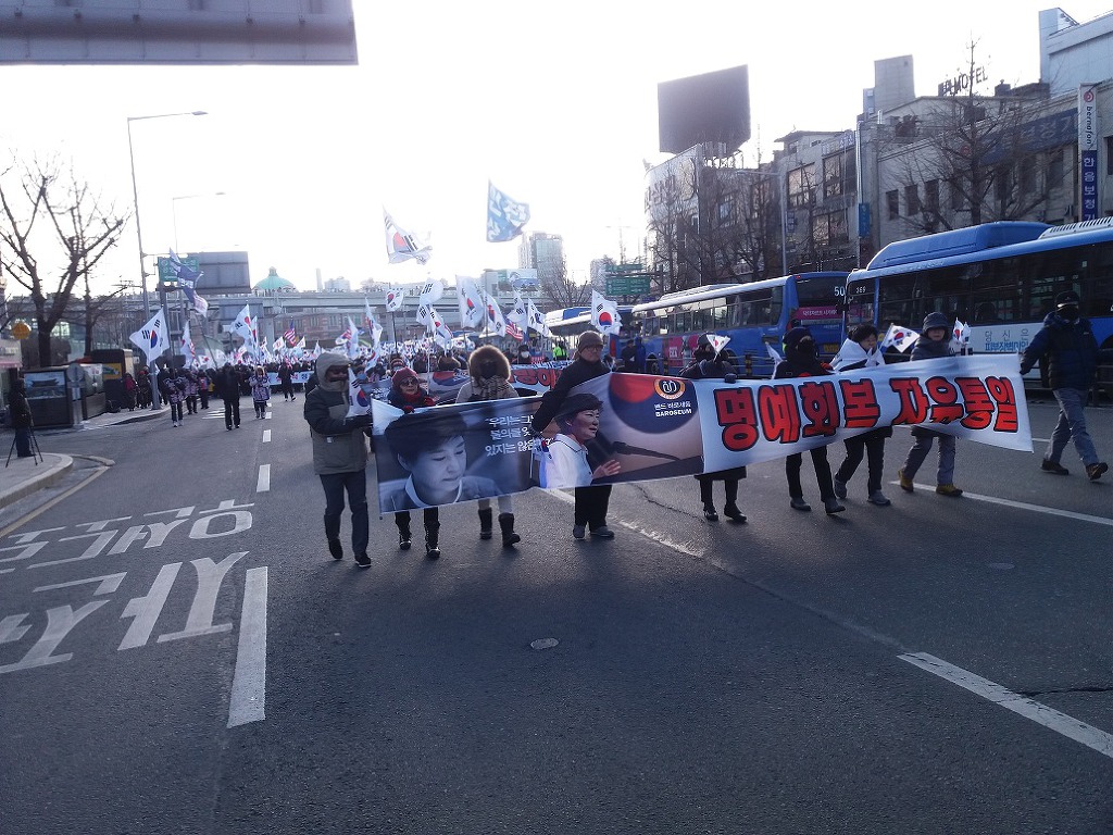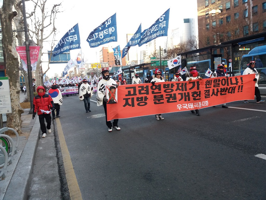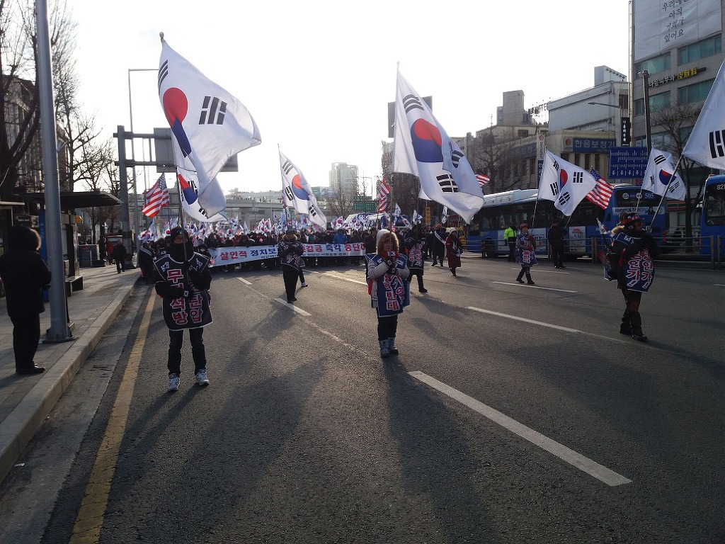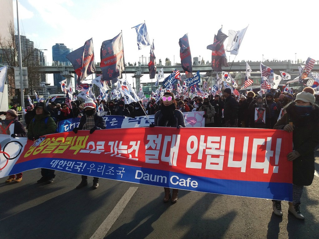 고가위의 사람들도 워낙 추워서 지난번보다 적지만 아래 행진하는 태극인들은 더 많아 졌습니다.