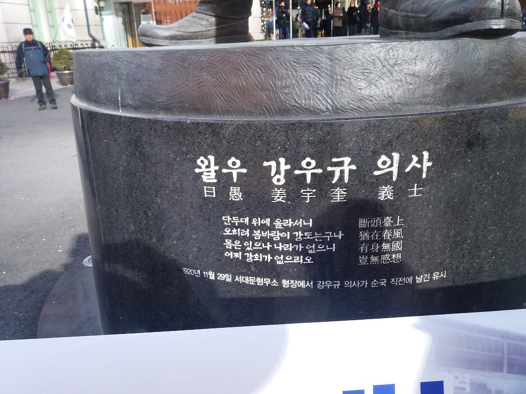 강우규 의사님 동상을 지나가고 있습니다. 자유민주주의 대한민국이 사라져갈 위기에 처해 있습니다.