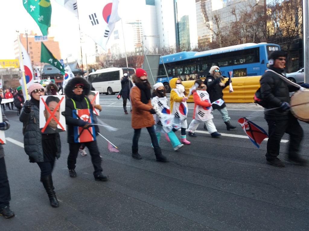 이 어린 아이들도 인공기와 정은 돼지는 반대합니다.. 그래서 발걸음이 더욱 힘차 보입니다.