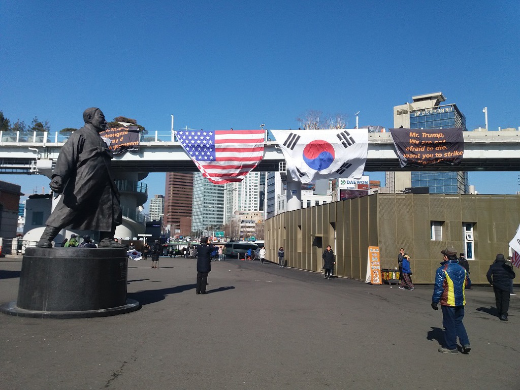 살을 에이는 매서운 한파속에서도 태극기는 아름답게 펄럭이고 무대는 만들어 지고 열정의 결기가 서울역을 내뿜고 있습니다.